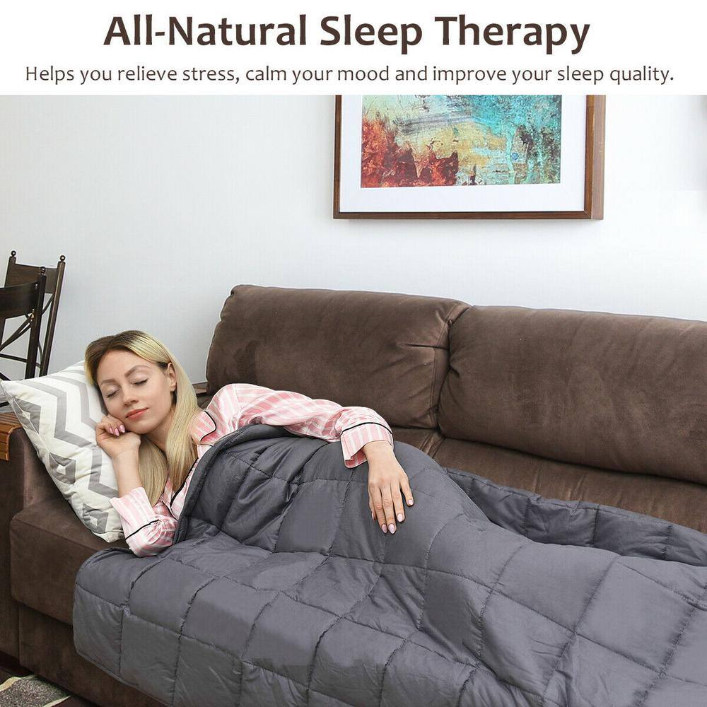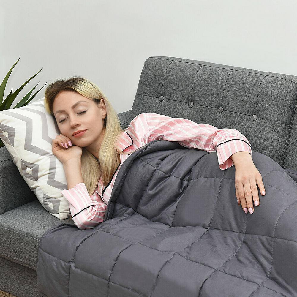 Gymax Weighted Blanket 12 lbs. Full/Queen Size Cotton Blanket Glass Beads Dark Gray