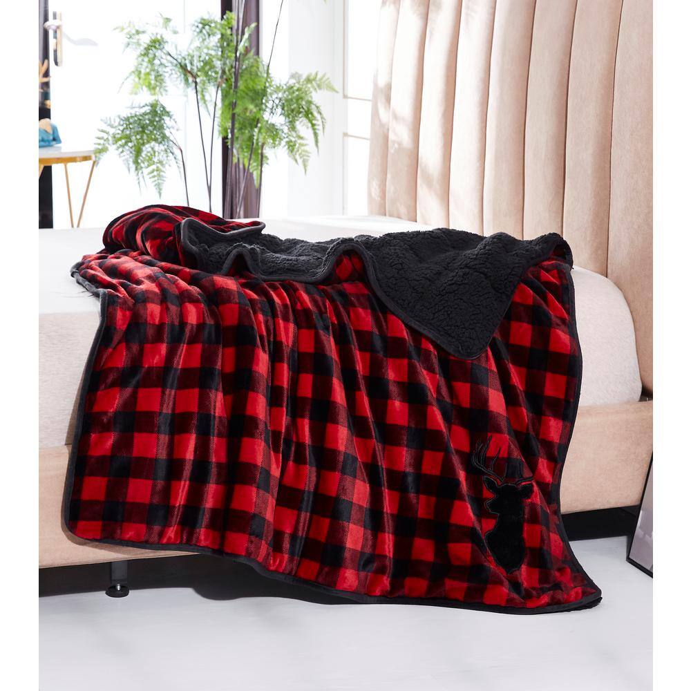None Bufflo Red Deer Applique Velvet to Sherpa Reverse 48 in. x 72 in. x 15 lbs. Weighted Throw Blanket