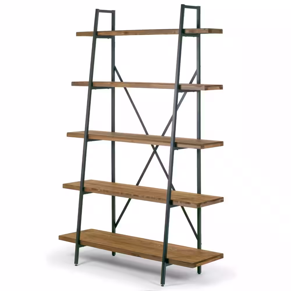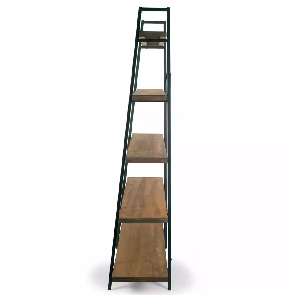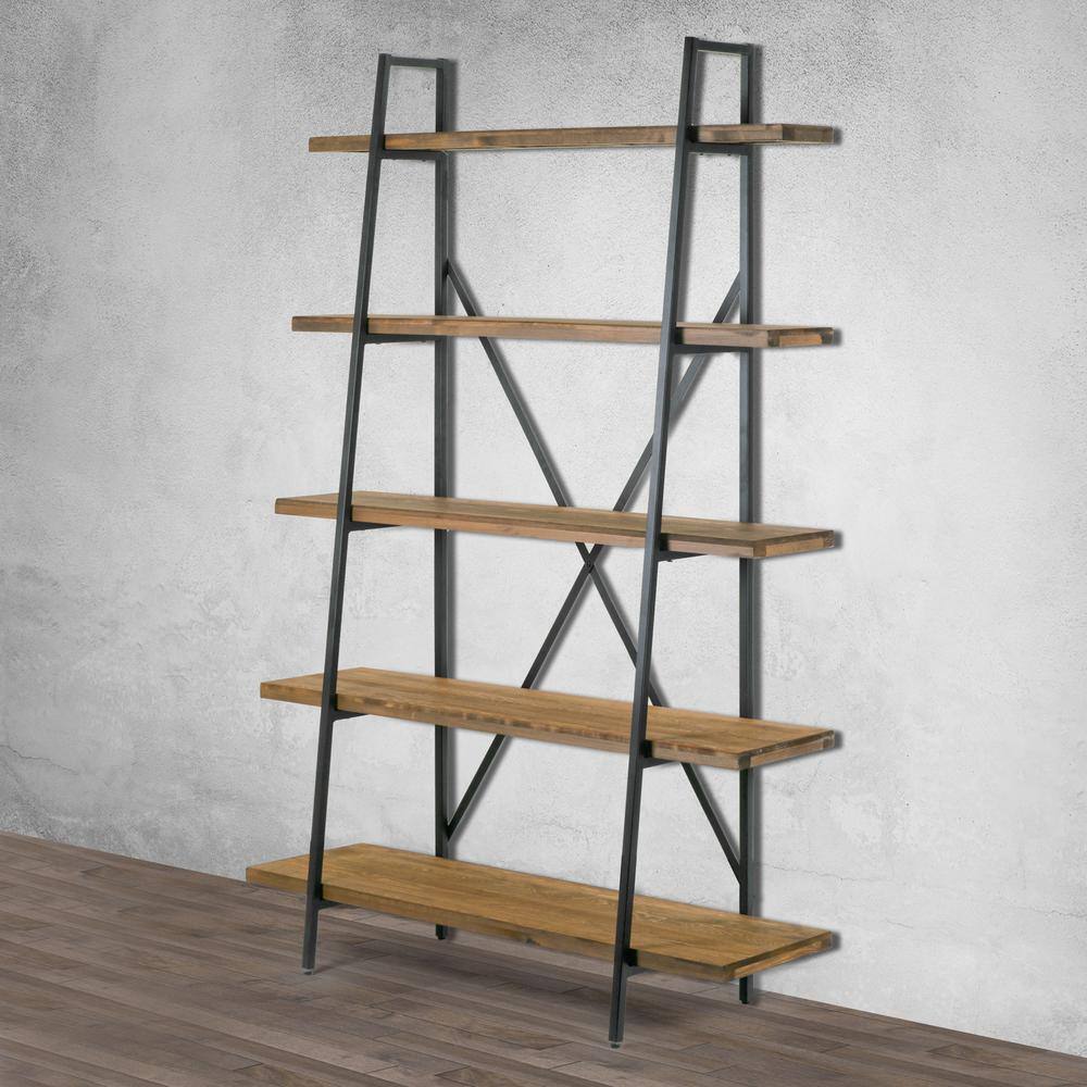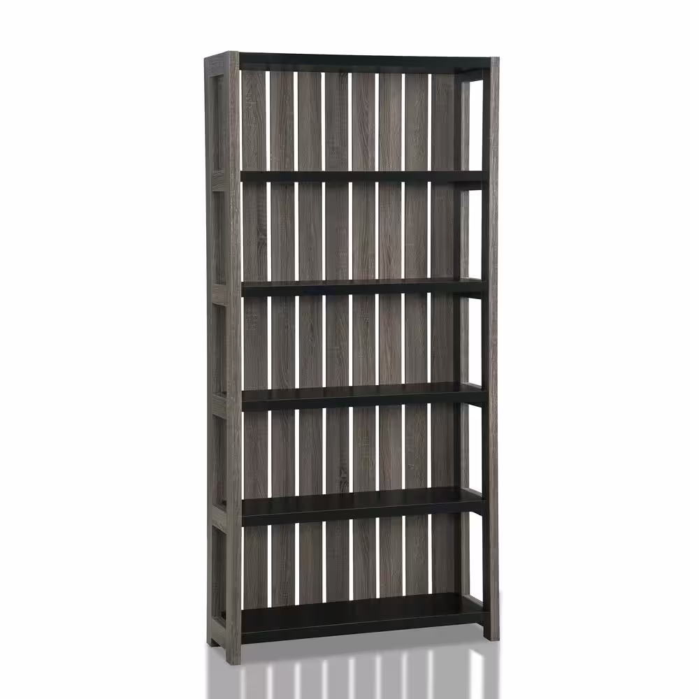 Furniture of America Wenoah 72 in. Distressed Gray/Black Wood 5-shelf Standard Bookcase with Reclaimed Wood