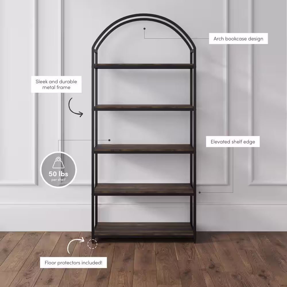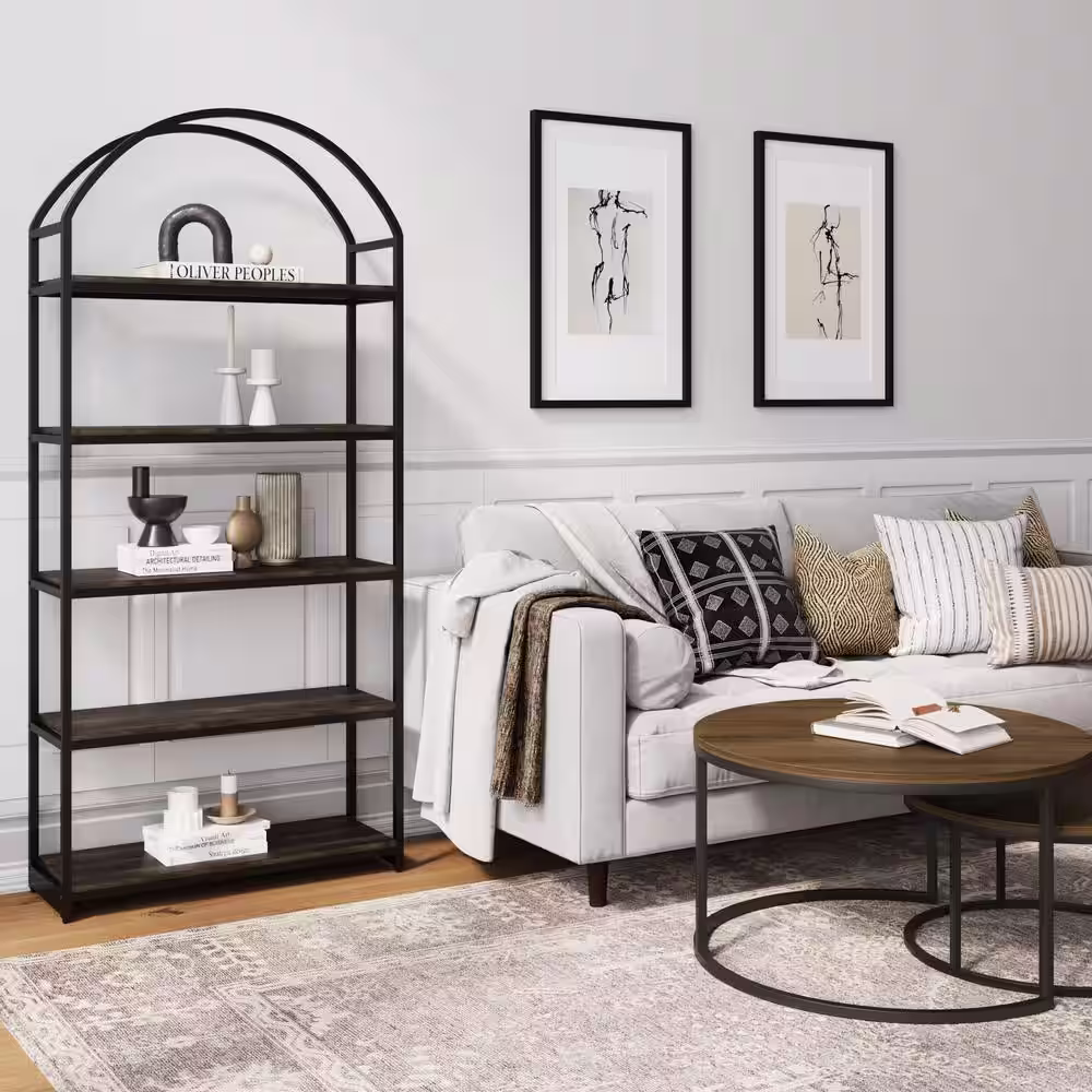 SAUDER Dawson Trail 69.016 in. Raven Oak 5 Shelf Accent Bookcase with Adjustable Shelves