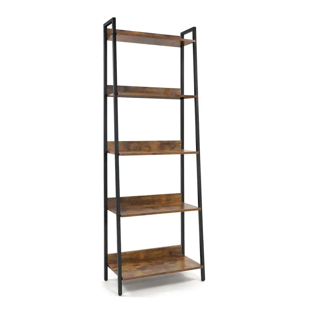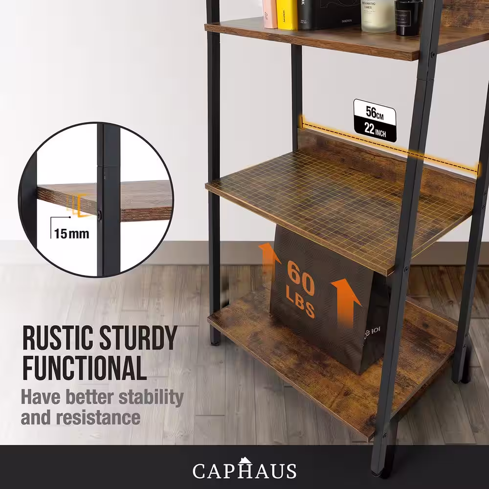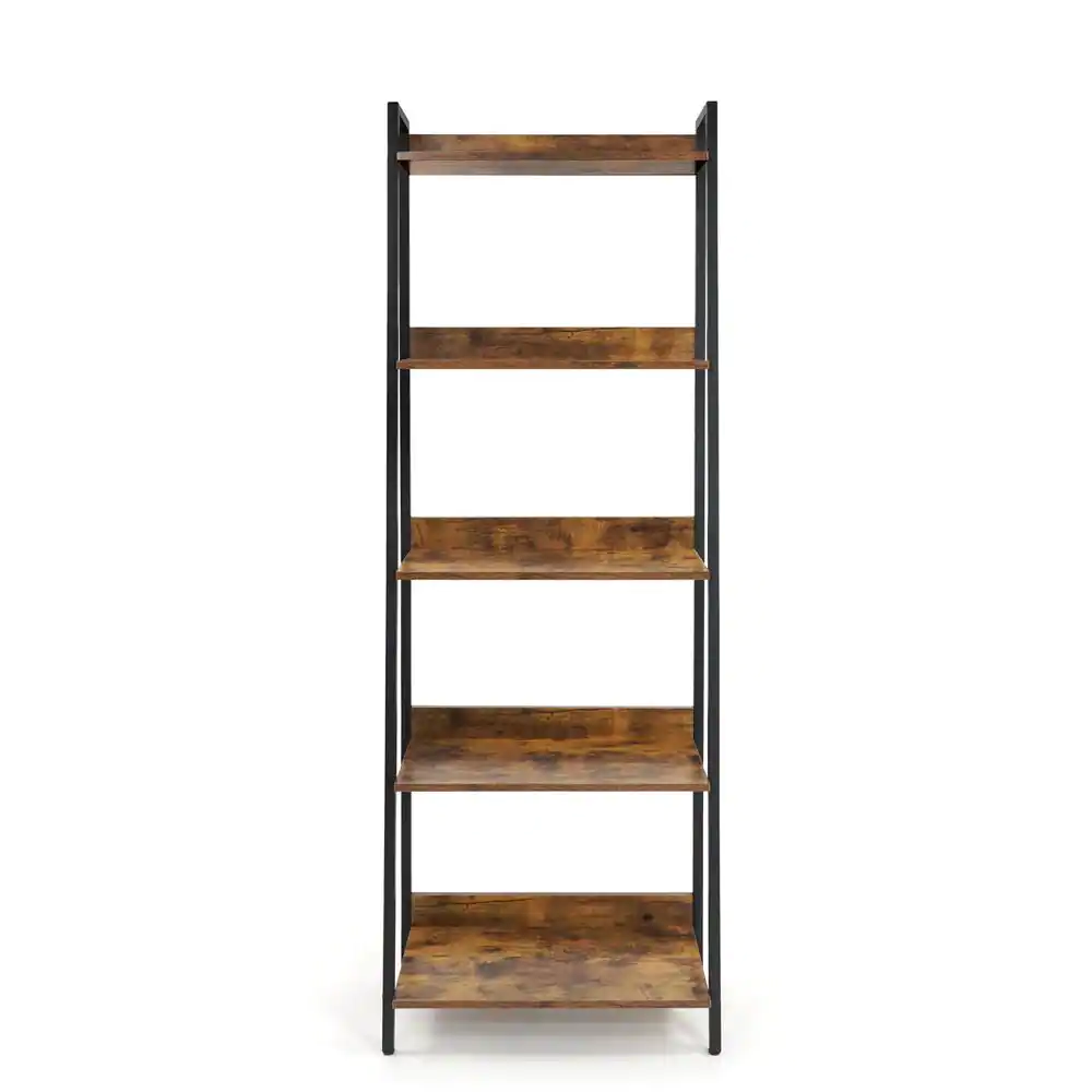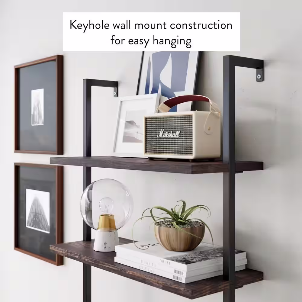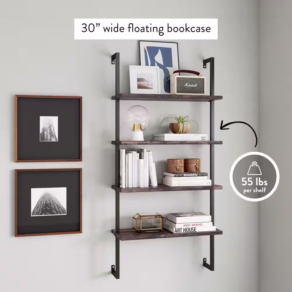 Nathan James Theo Nutmeg Brown 4-Shelf Wood 64 in. Black Pipe Metal Frame Floating Wall Mount Shelves Bookcase