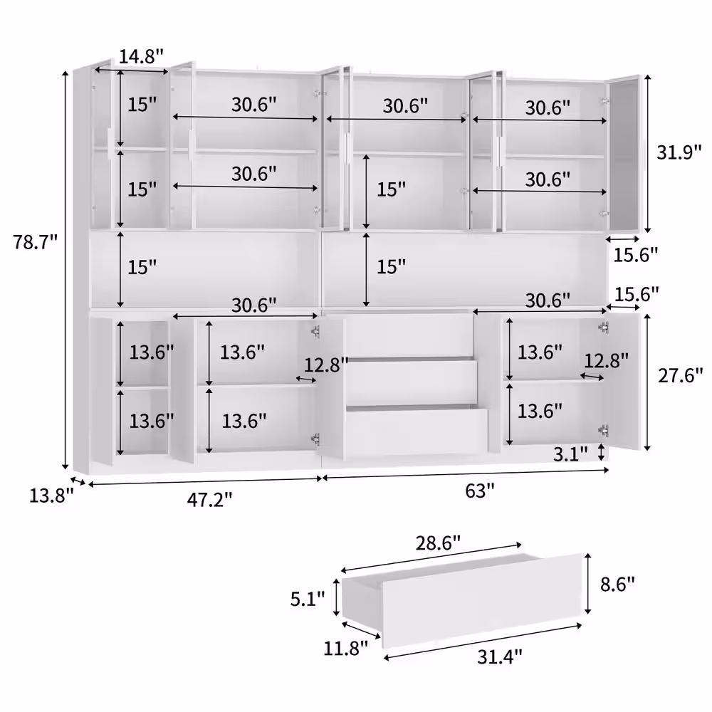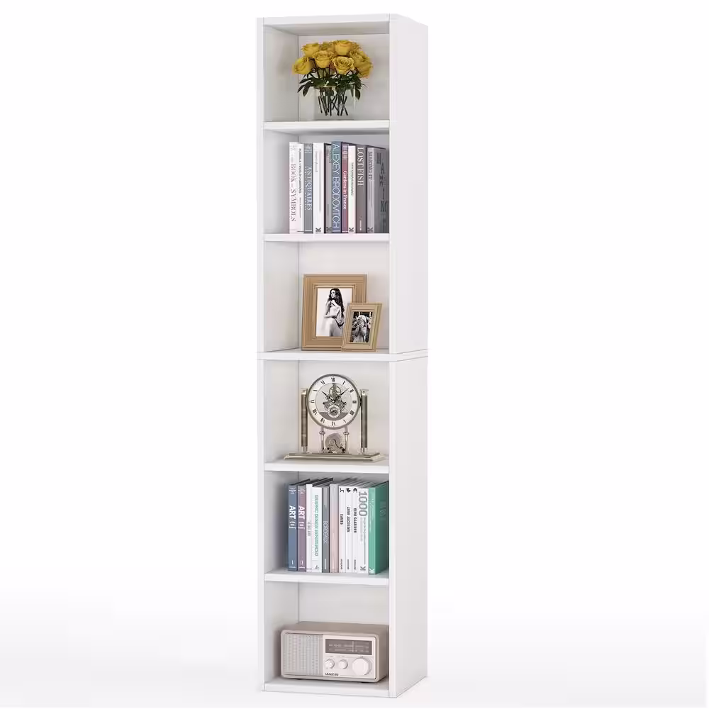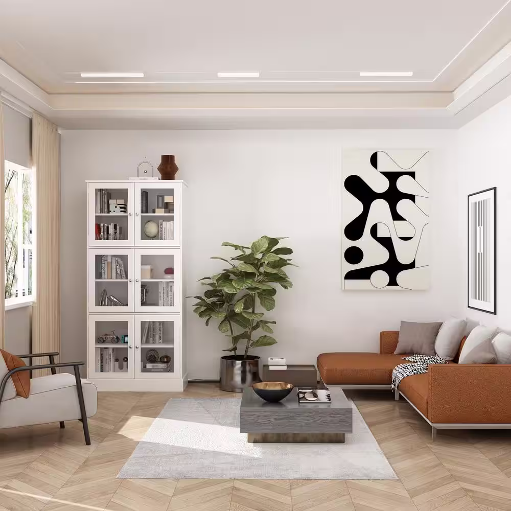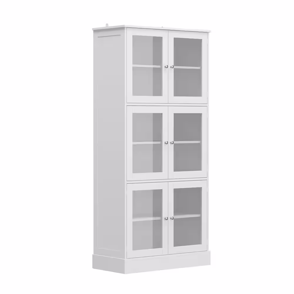 FUFU&GAGA 67.9 in. Tall White Wooden 6 Shelves Standard Bookcase, Storage Cabinet with Visible Tempered Glass Doors
