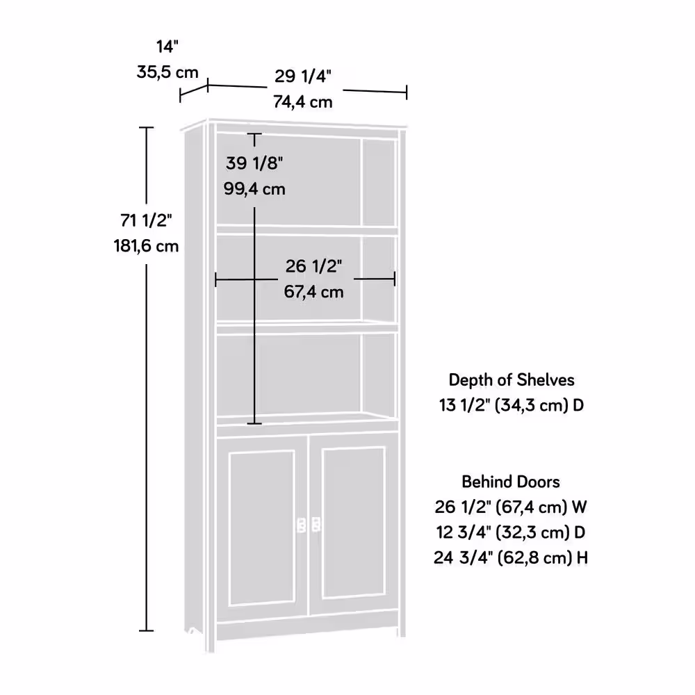 SAUDER 71.5 in. Mystic Oak Faux Wood 5-shelf Standard Bookcase with Doors
