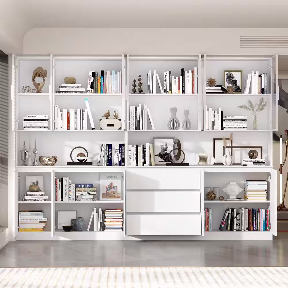SAUDER 75 in. White Plank Faux Wood 10-shelf Standard Bookcase with Cubes