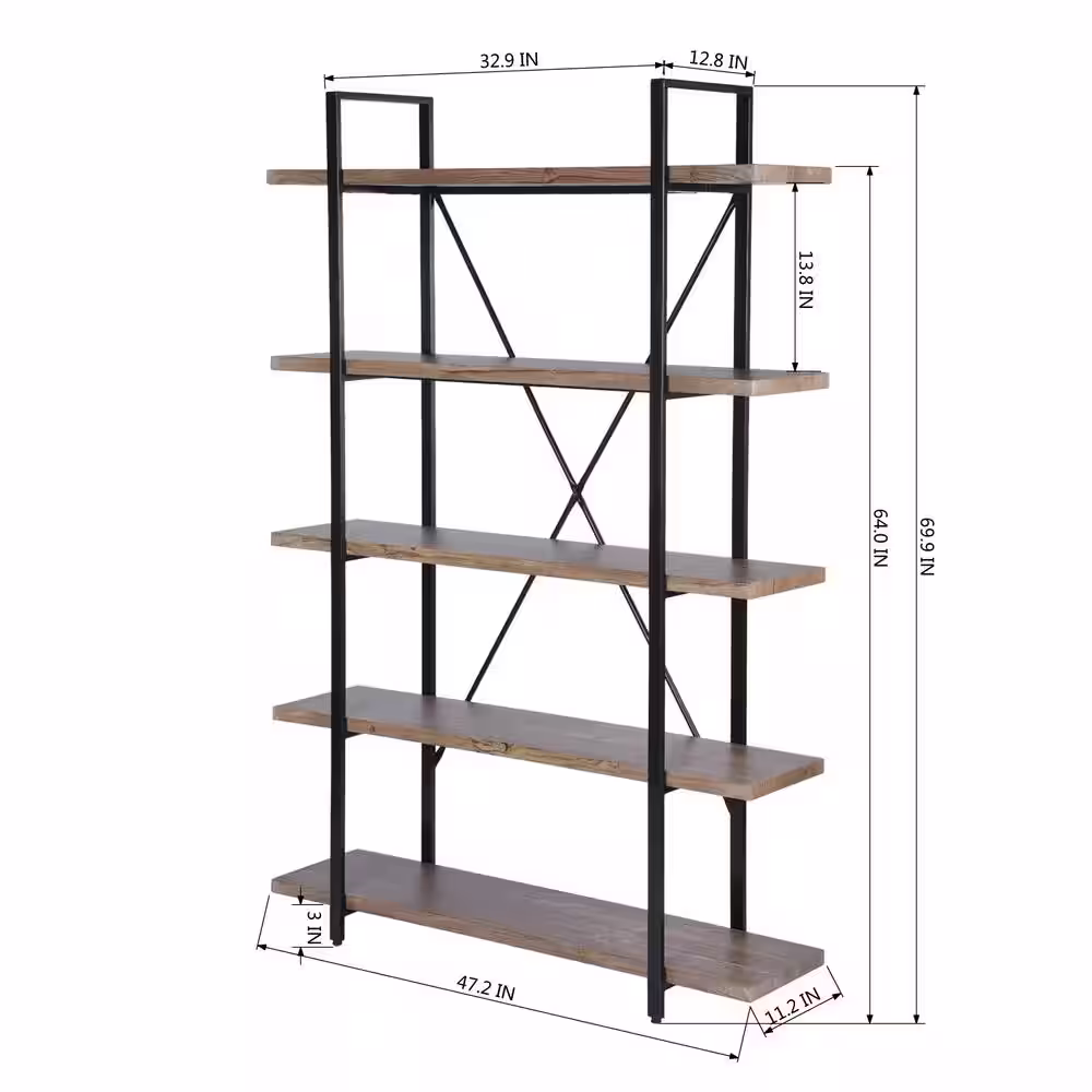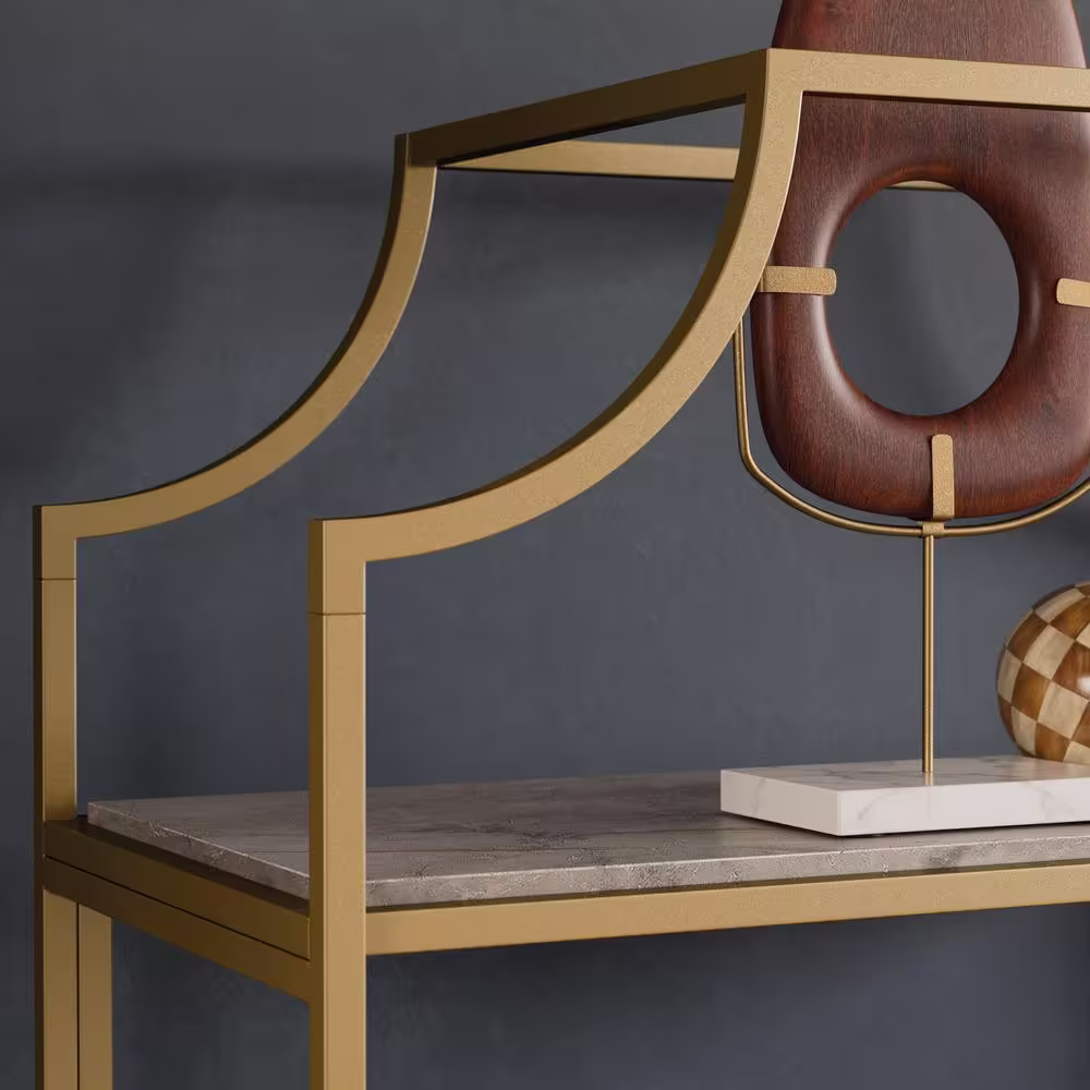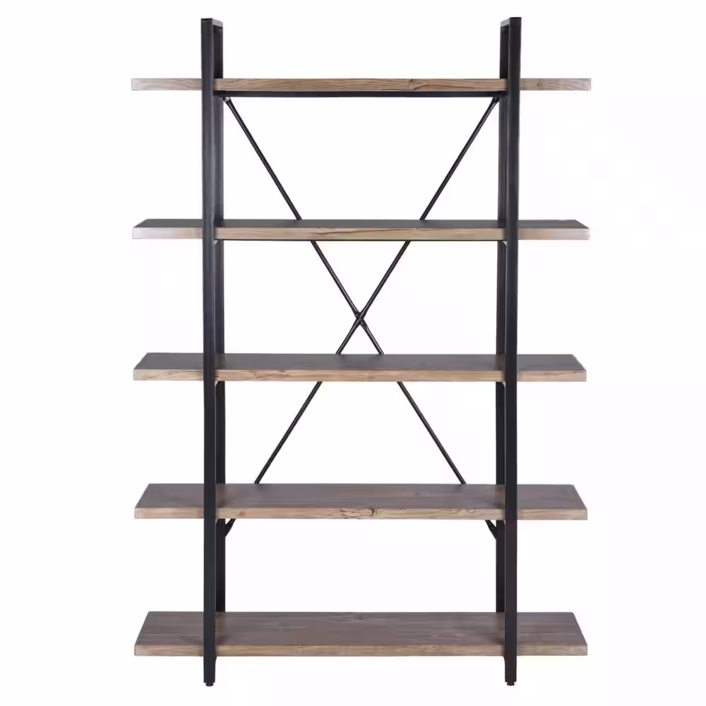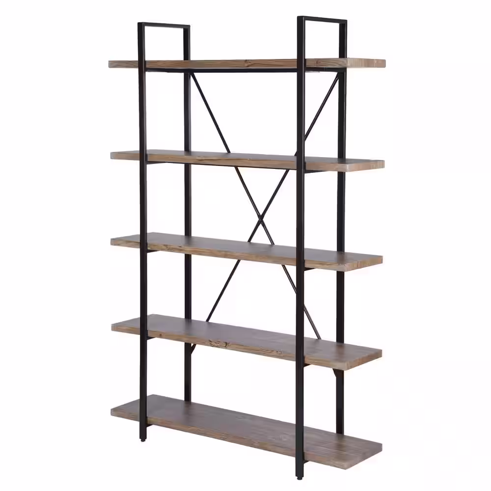 SAUDER International Lux 70.866 in. Faux Deco Stone Metal 5-Shelf Accent Bookcase