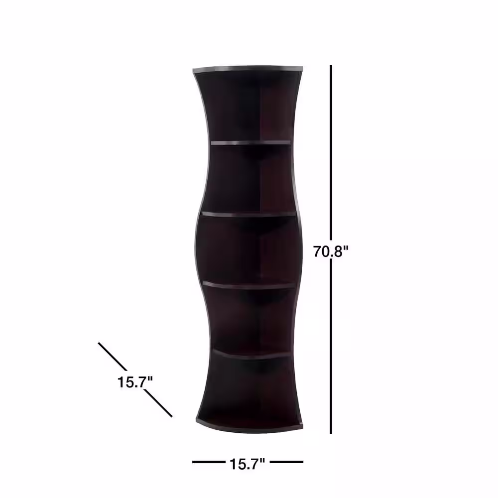 Furniture of America Lenard 70.8 in. Walnut Wood 5-shelf Corner Bookcase with Open Storage