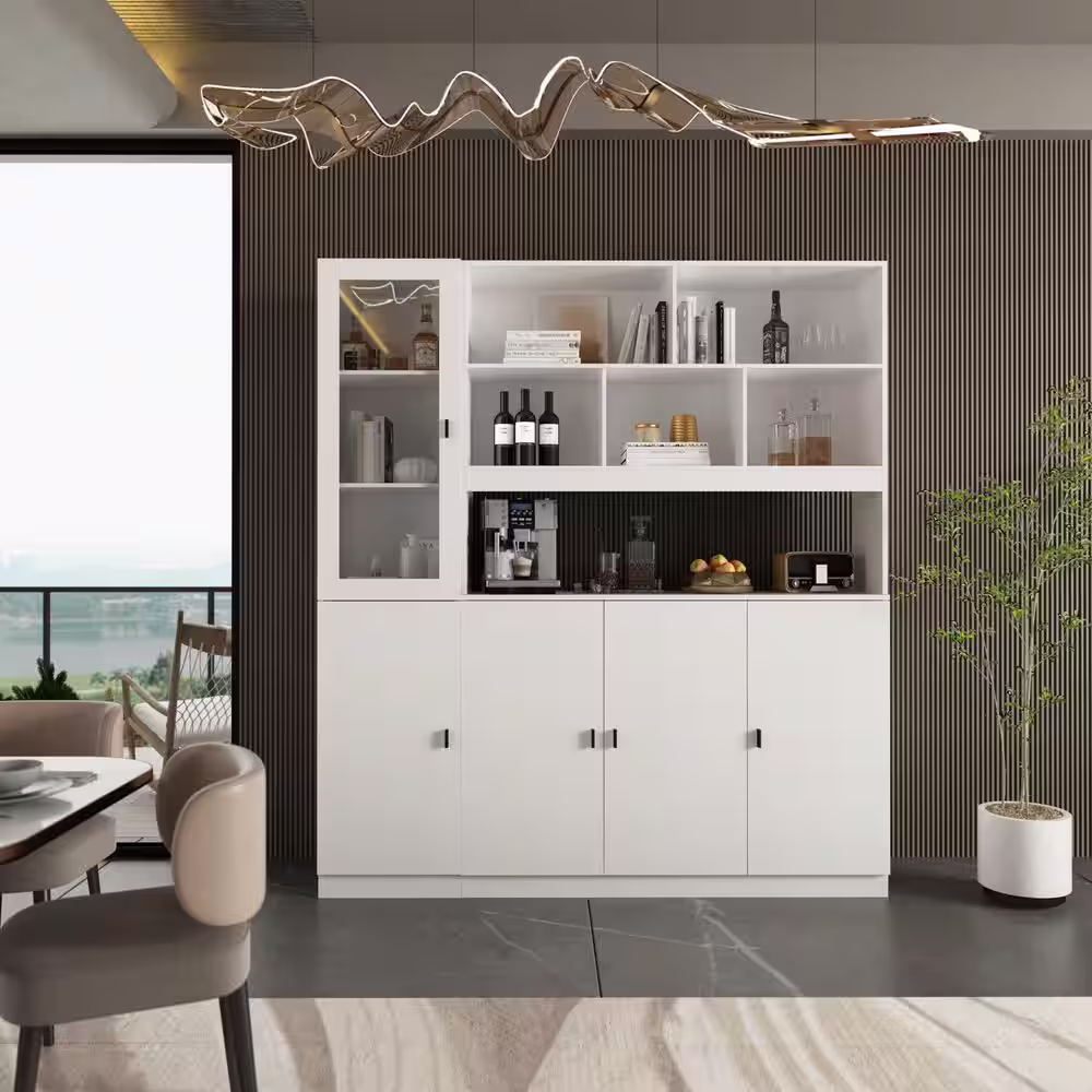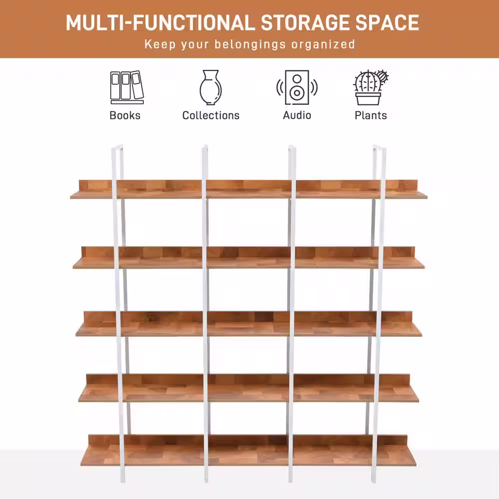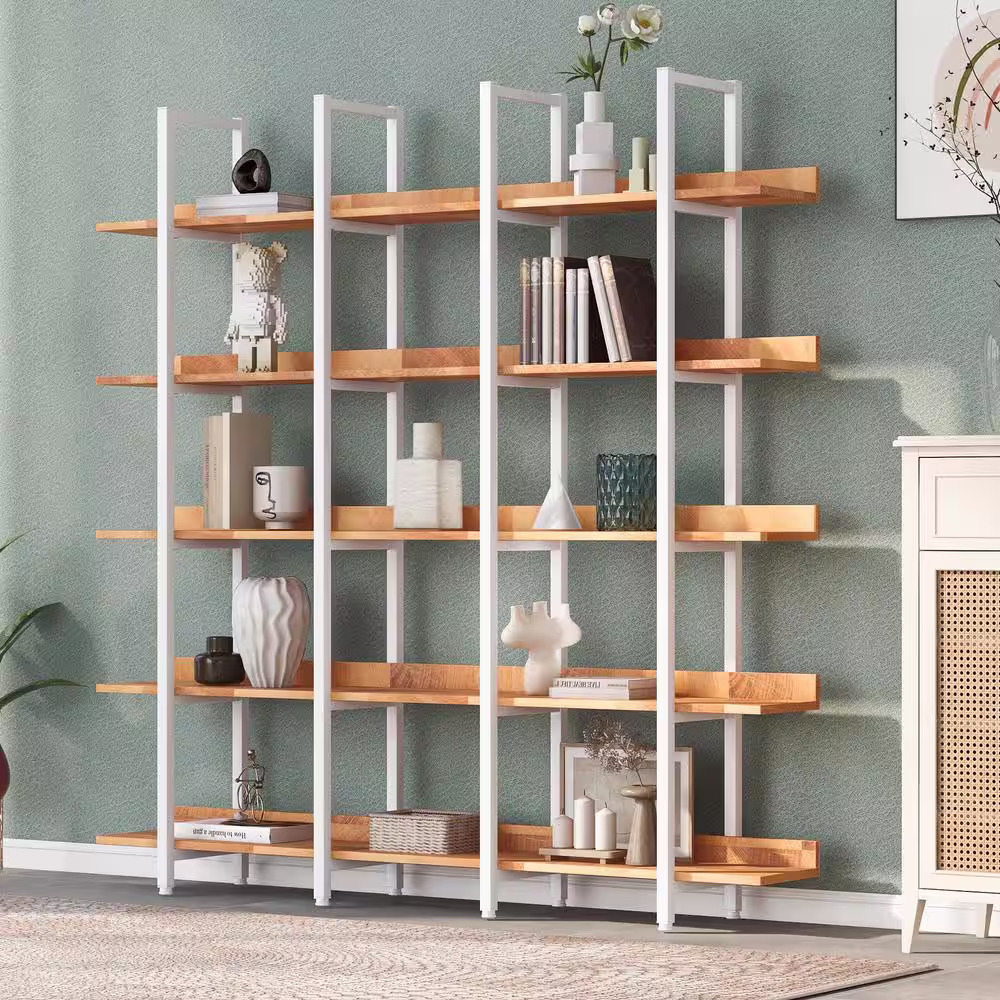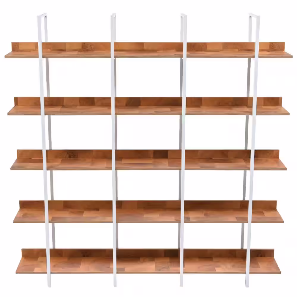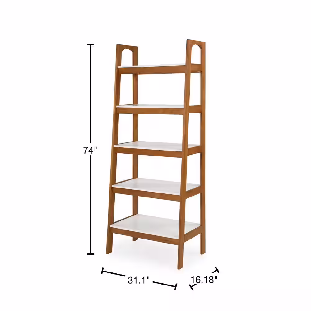 Camaflexi Mid Century Modern 74 in. White / Castanho Wood 5-Shelf Open Bookcase with Solid Wood Frame