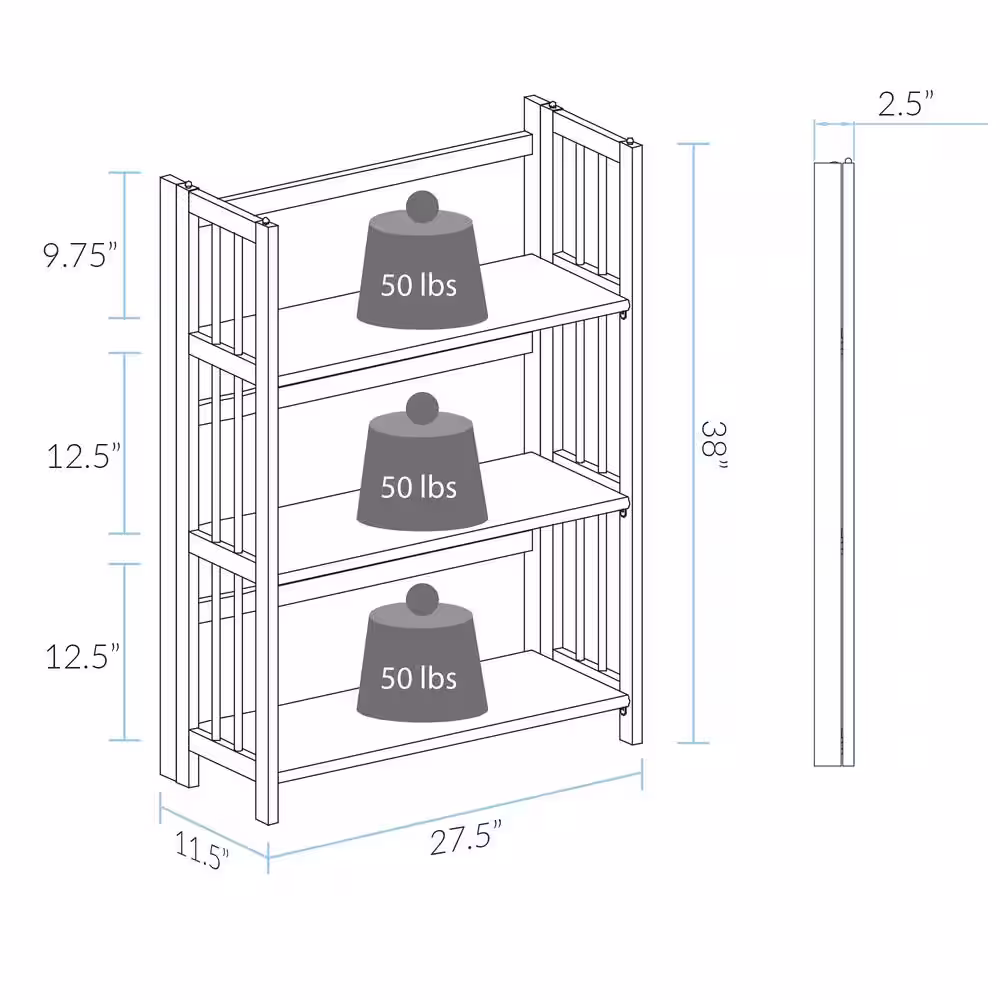 International Concepts 36 in. H Unfinished Solid Wood 3-Shelf Standard Bookcase