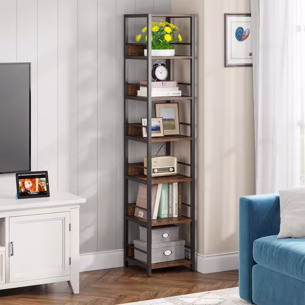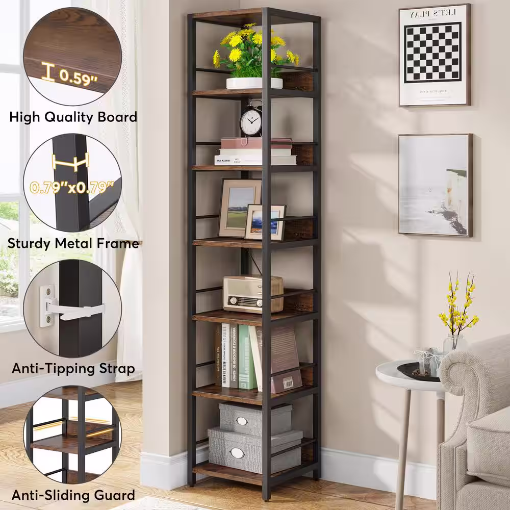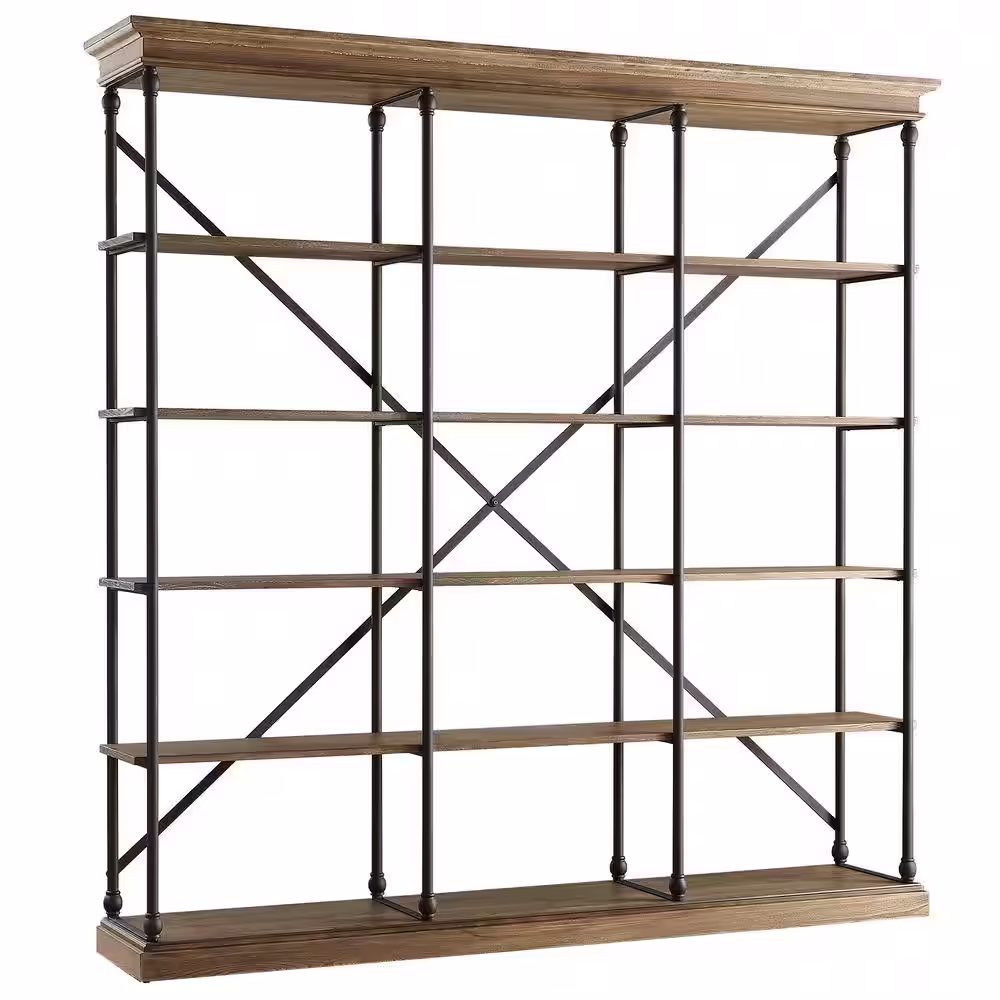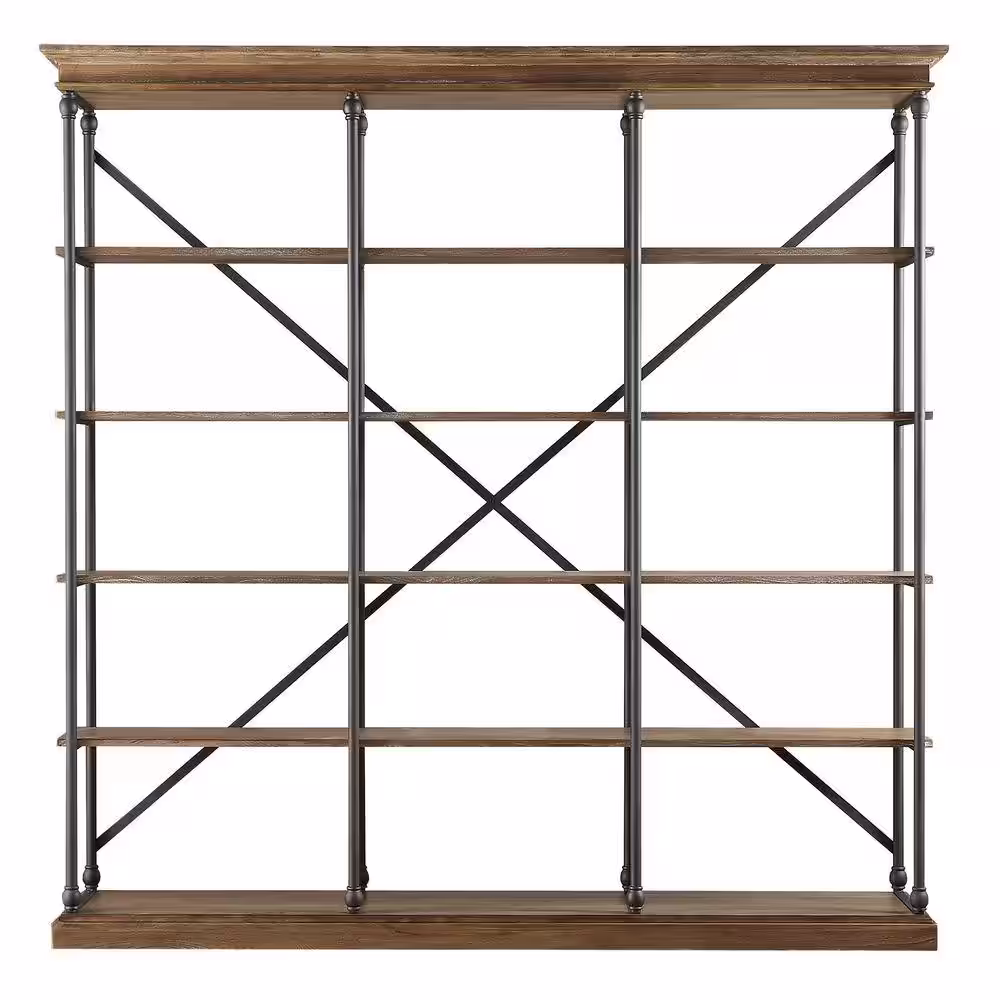 HomeSullivan 84 in. Vintage Oak Metal 5-shelf Etagere Bookcase with Open Back