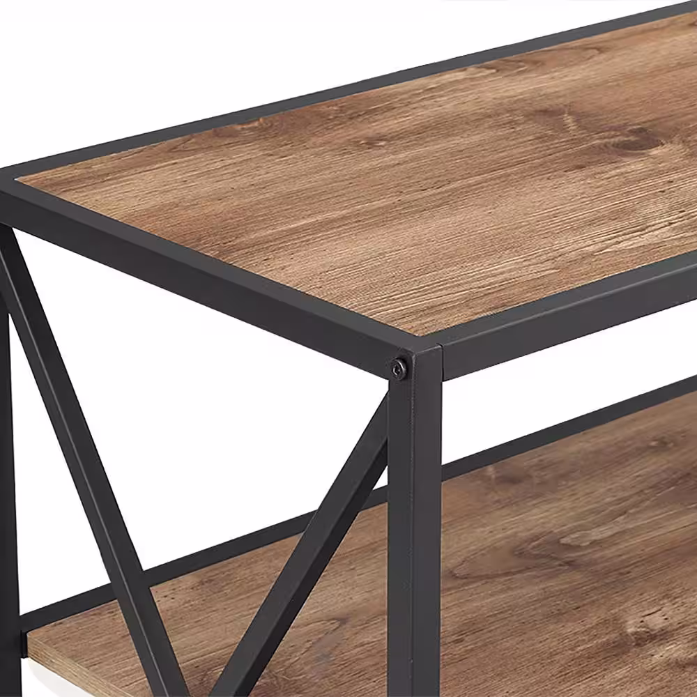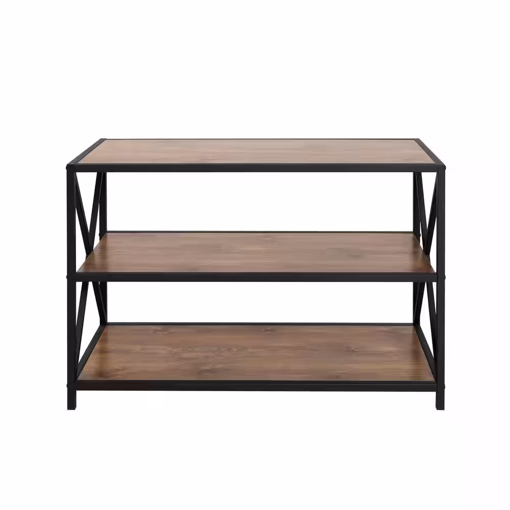 Walker Edison Furniture Company 26 in. Barnwood/Black Metal 3-shelf Etagere Bookcase with Open Back