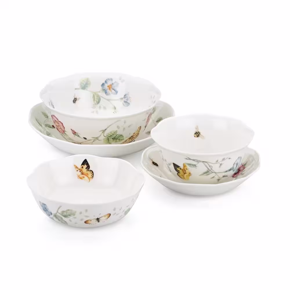 Noritake Menorca Palace 12 fl.oz Blue/Yellow White Bone China Soup Bowls 8-1/4 in. (Set of 4)