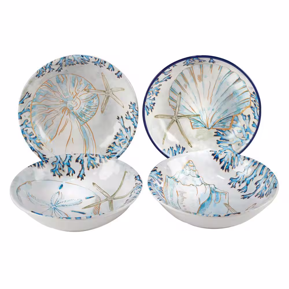 Certified International Playa Shells 40 oz. 9 in. Multicolor Eathenware Soup Bowl (Set of 4)