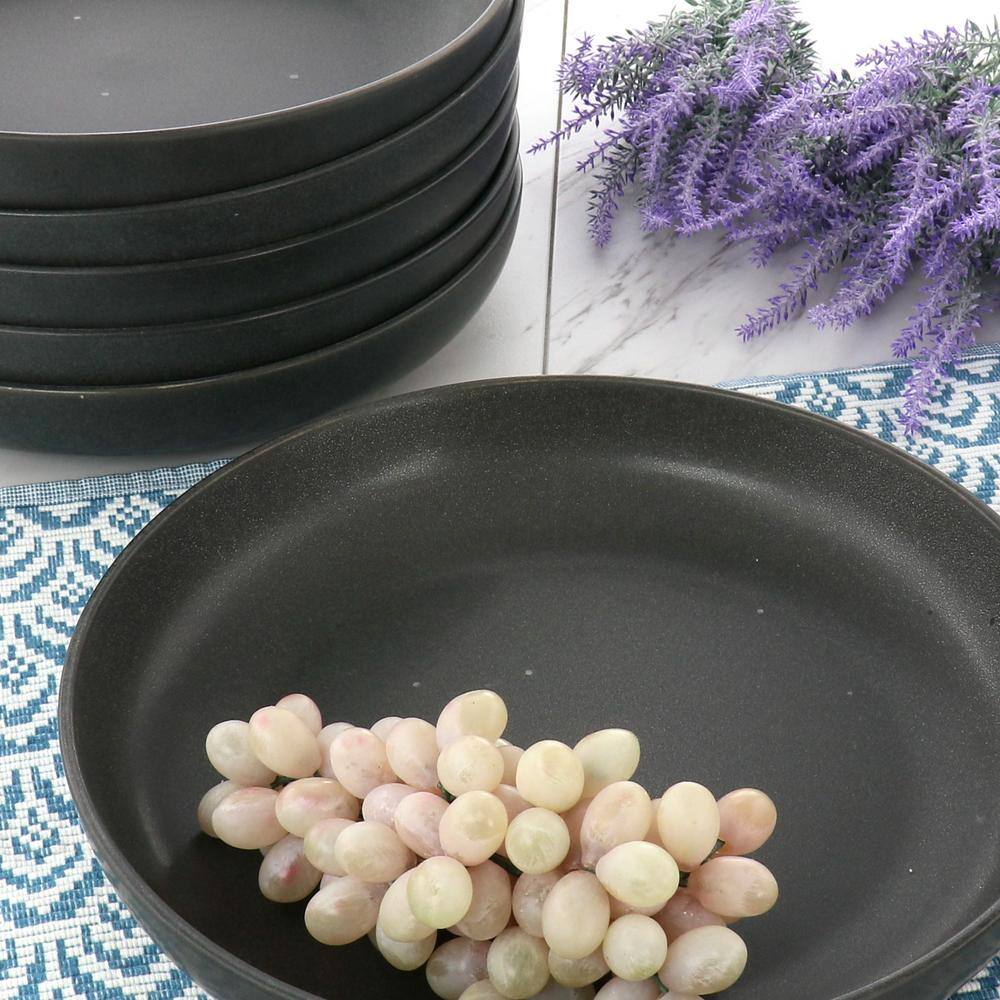 None Landon 24 fl. oz. 9.5 in. Truffle Gray Round Stoneware Bowl (Set of 6)