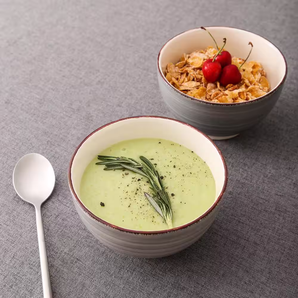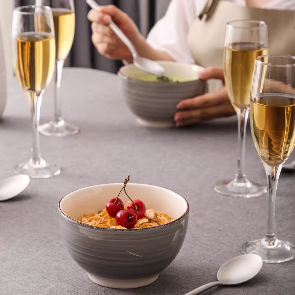 vancasso Series Bella 5.5 in. Cereal Bowl Porcelain in Vintage Look Gray Dinnerware Set (Service for 4)