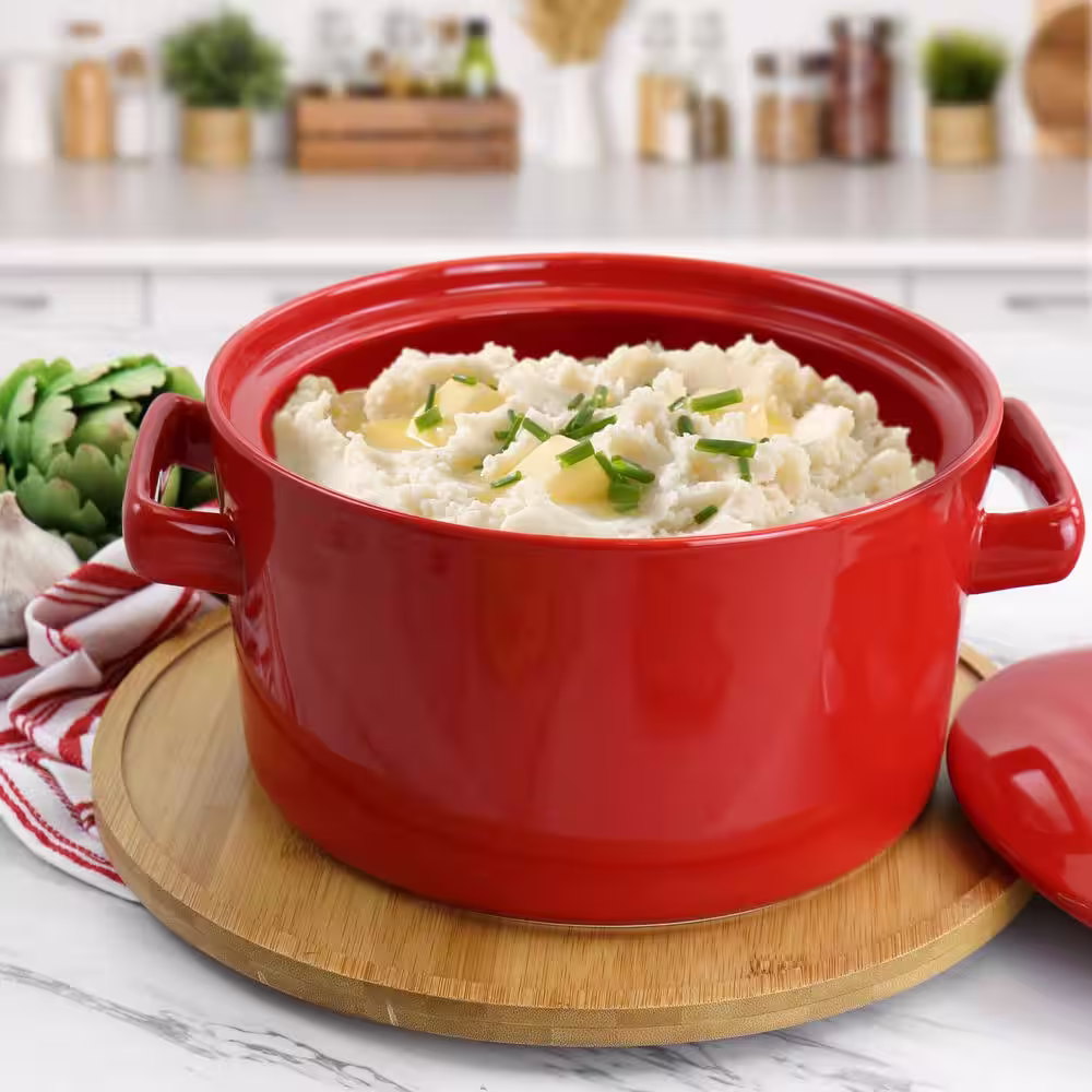 Crock-Pot Appleton 2 qt. Oval Stoneware Casserole Dish in Red with Glass Lid