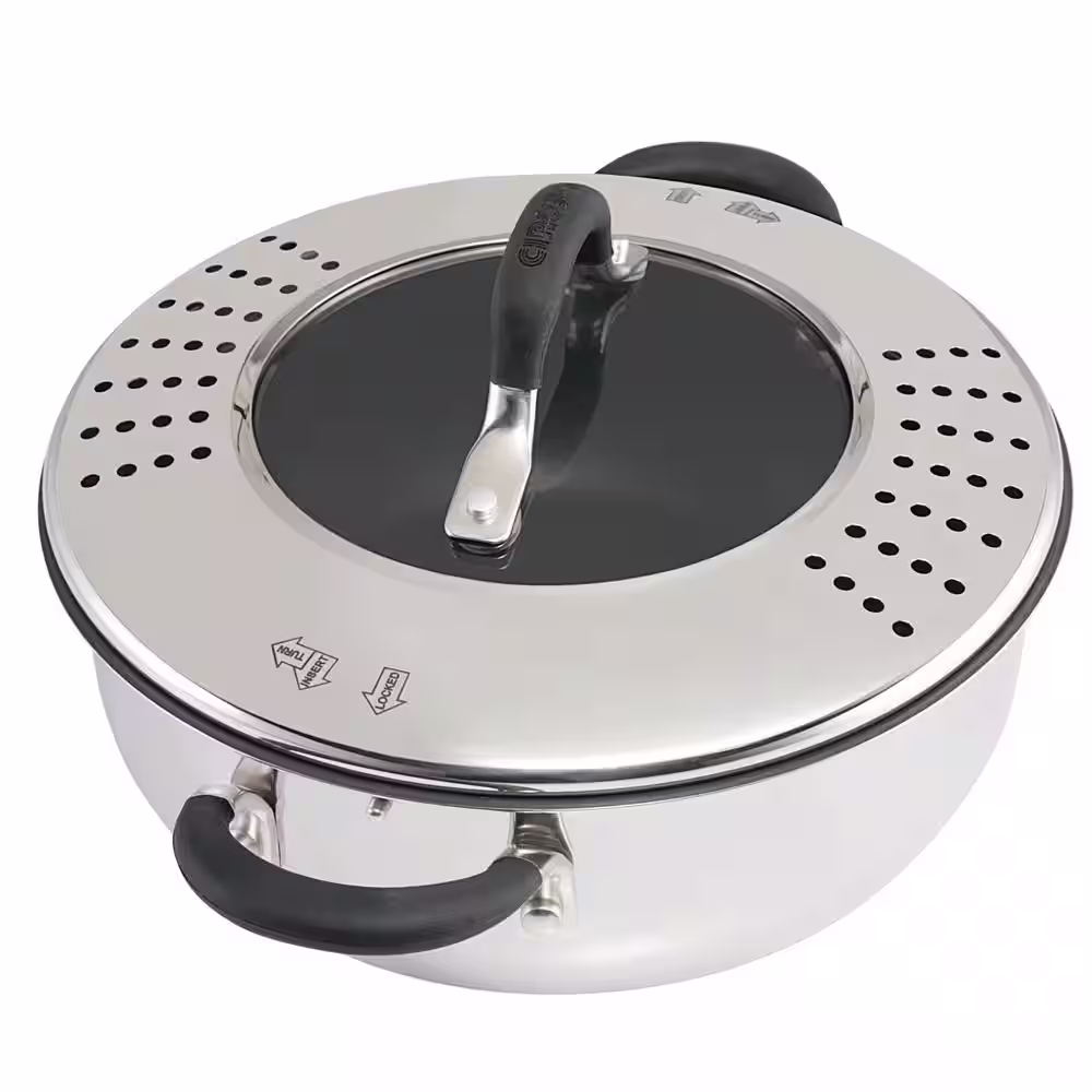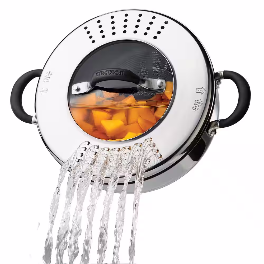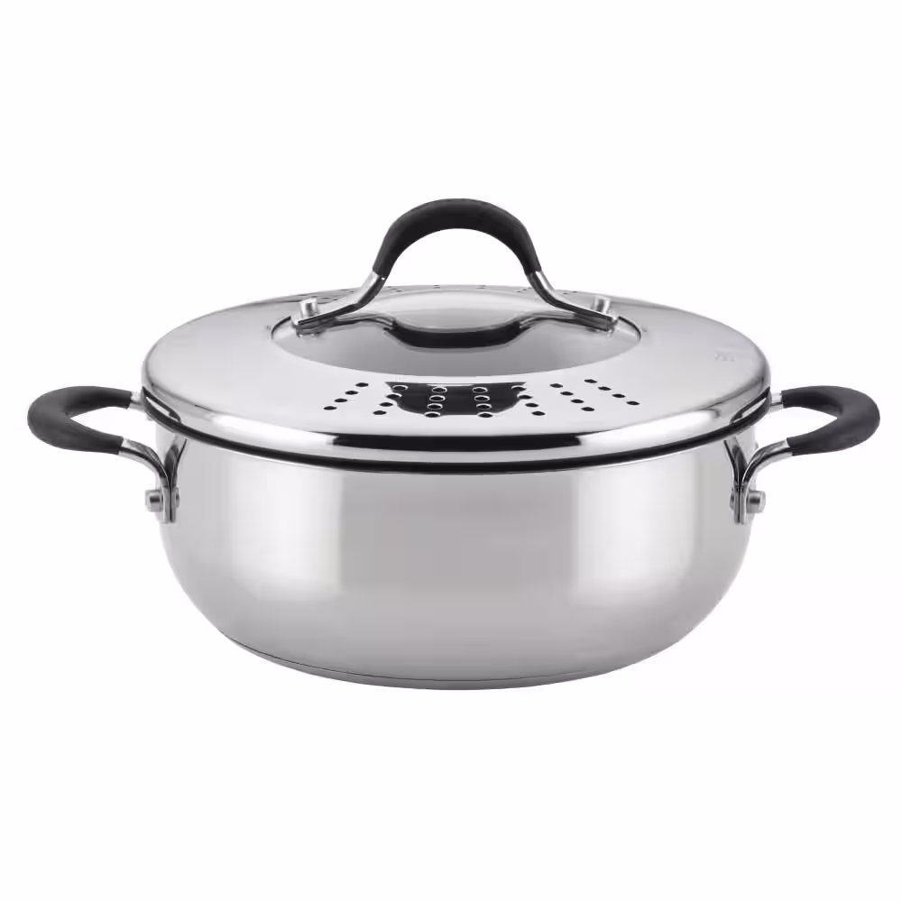 Circulon Momentum Stainless Steel Nonstick 4-Quart Covered Casserole with Locking Straining Lid
