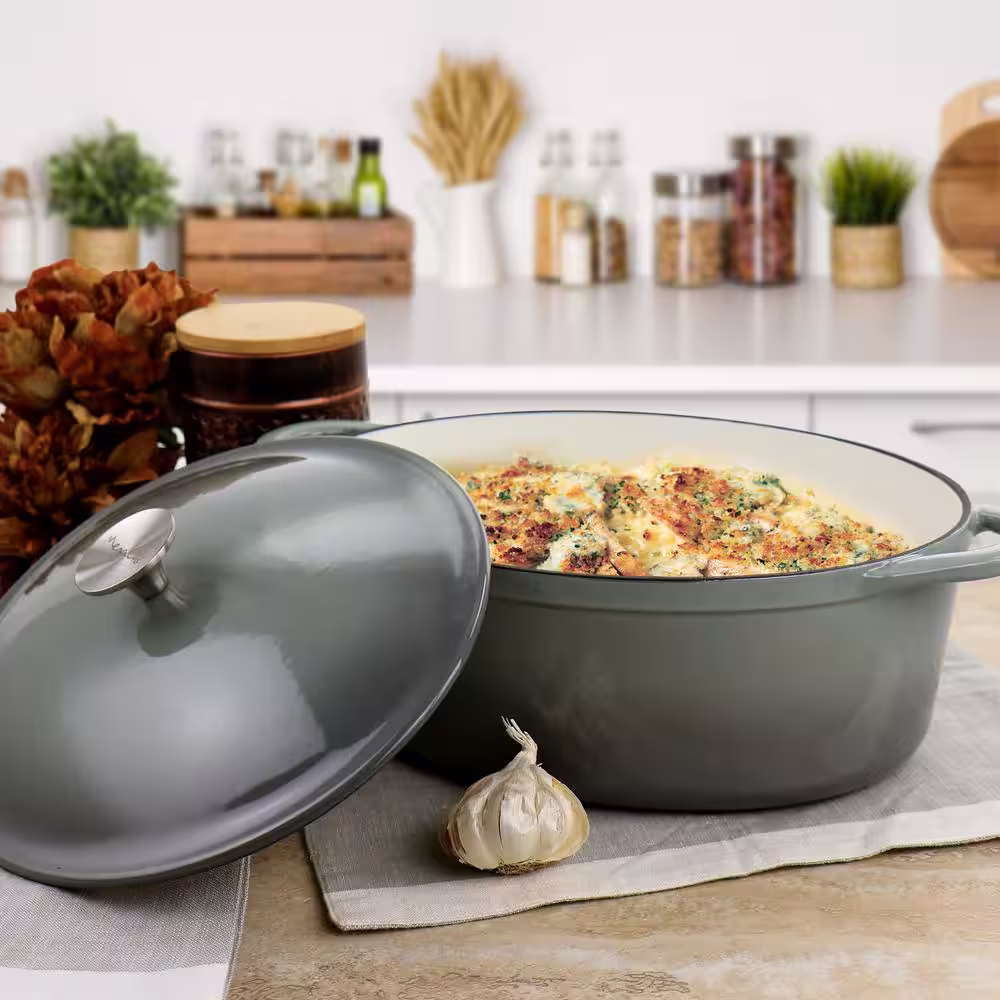 Rachael Ray Create Delicious 4 qt. Cast Iron Casserole Dish in Teal Shimmer with Griddle Lid