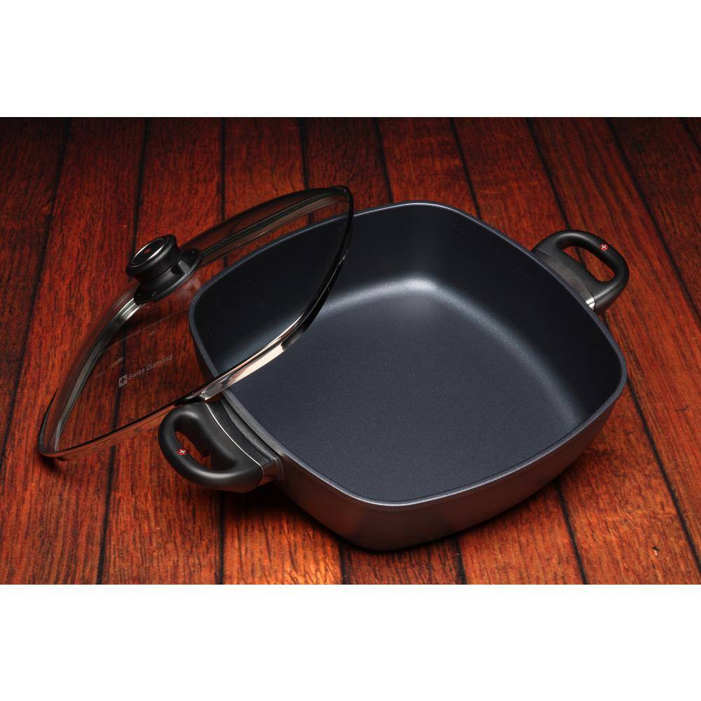 Swiss Diamond 11 in.x11 in. 5Qt Square Casserole Pan HD Classic Induction Nonstick Diamond Coated Aluminum Includes Lid