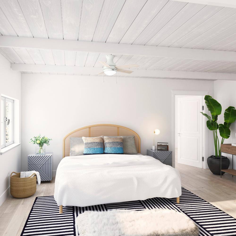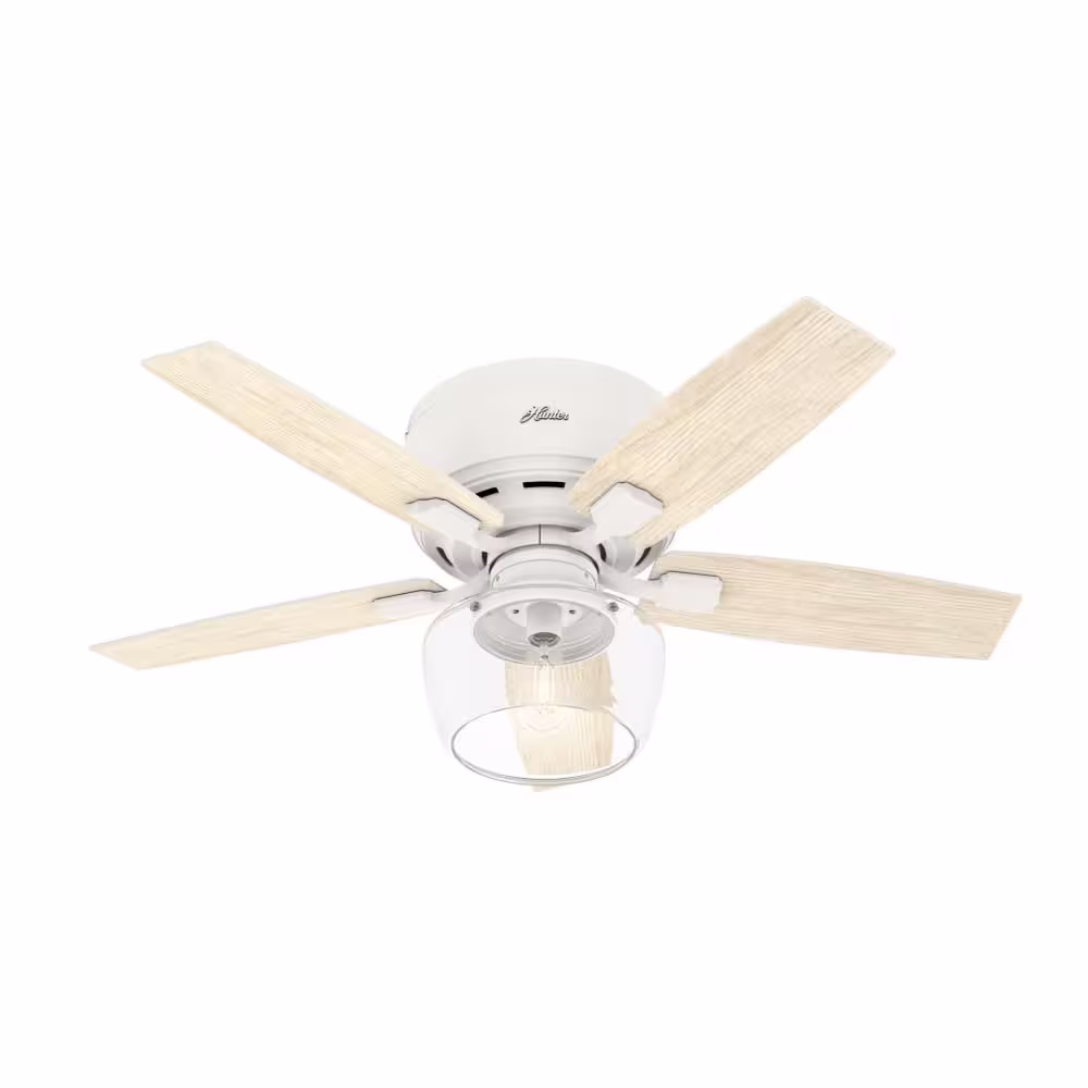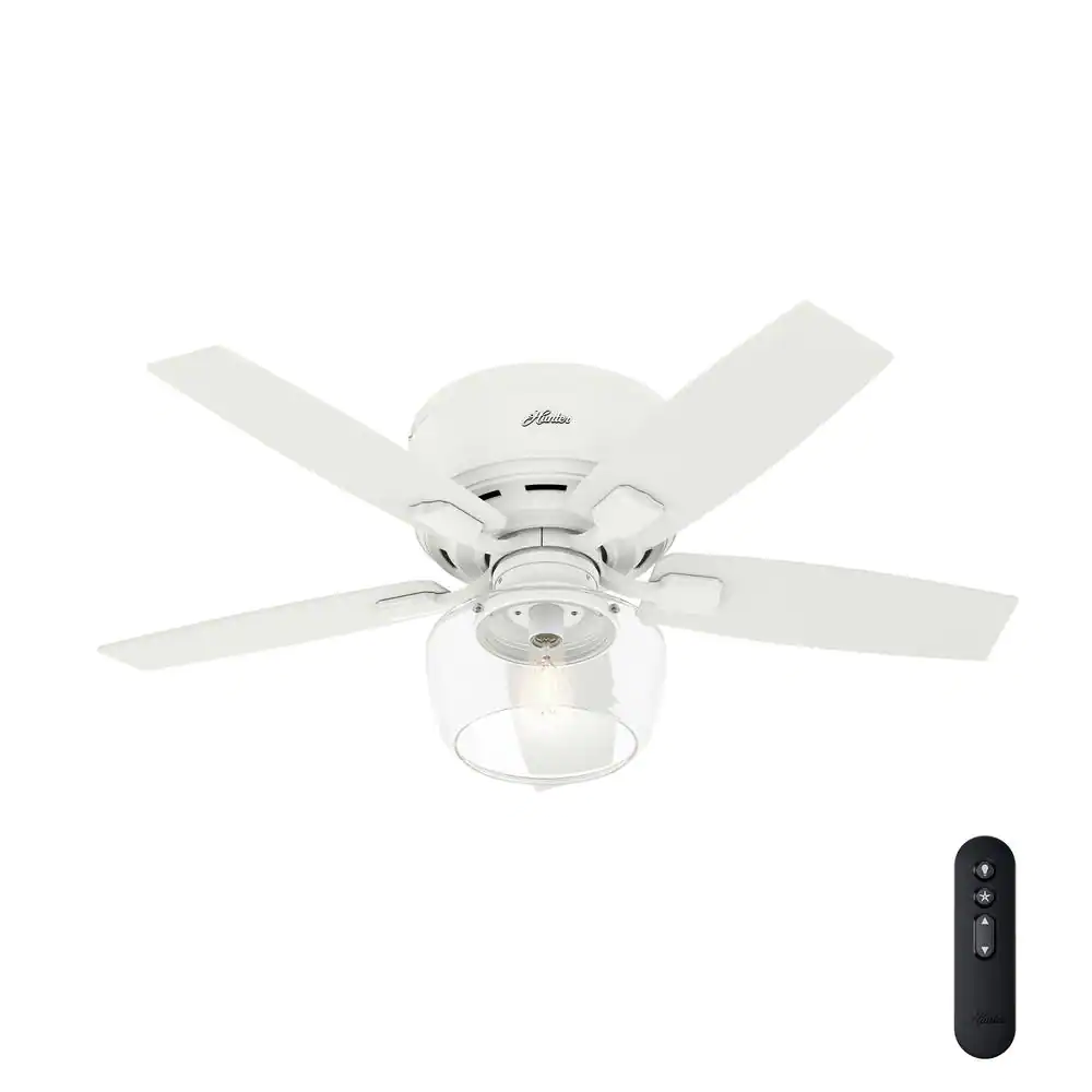 Hunter Bennett 44 in. Indoor Matte White LED Low Profile Ceiling Fan with Light Kit and Remote Control