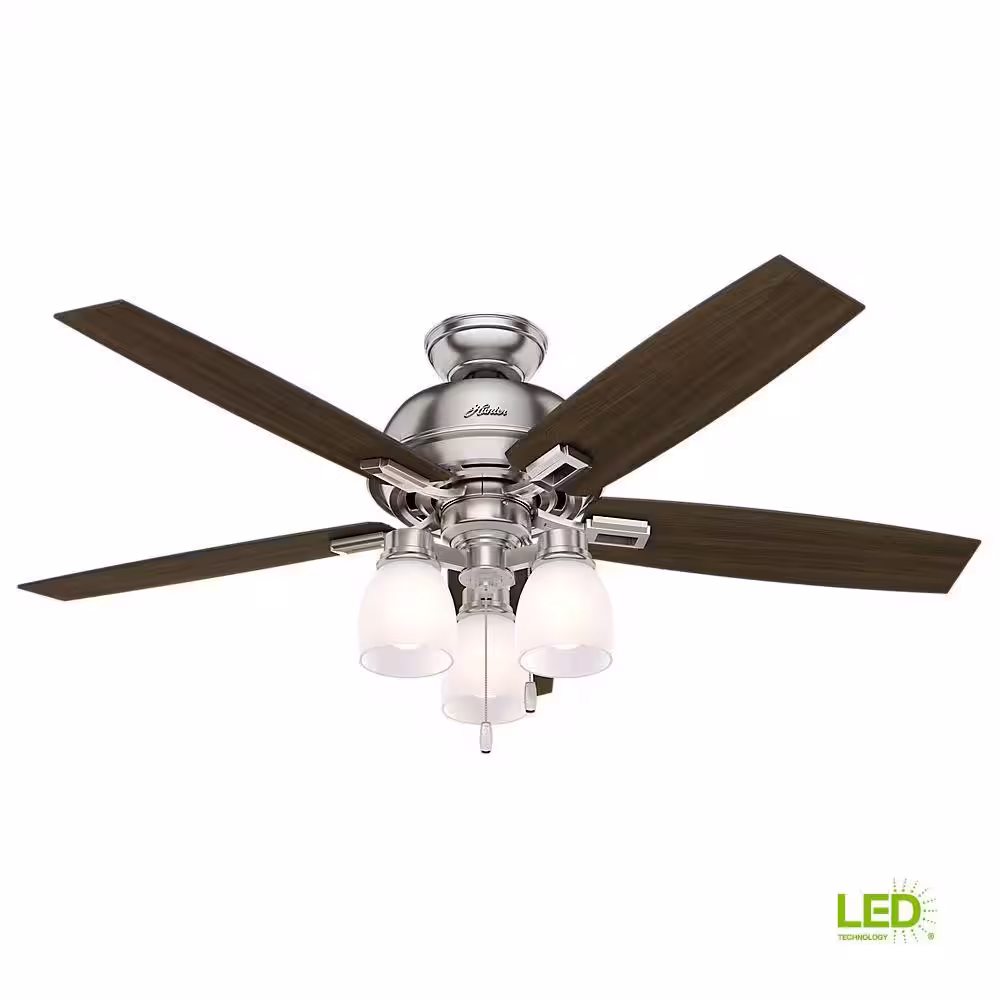 Hunter Donegan 52 in. LED Indoor Brushed Nickel Ceiling Fan with 3-Light