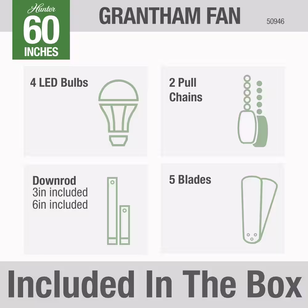 Hunter Grantham 60 in. LED Indoor Fresh White Ceiling Fan with Light Kit