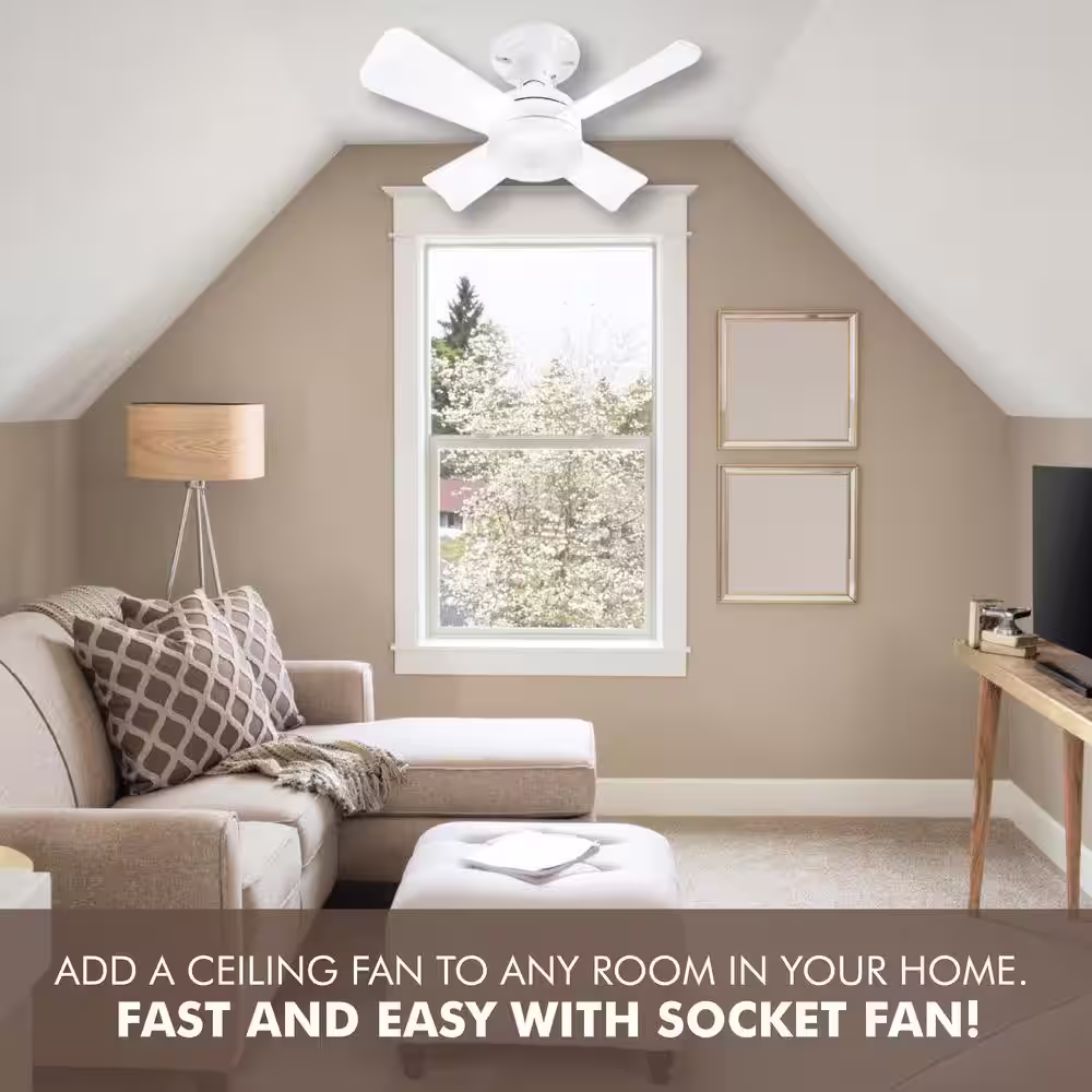 Bell + Howell 15.7 in. Indoor White Ceiling Fan with Remote, LED Light, Socket