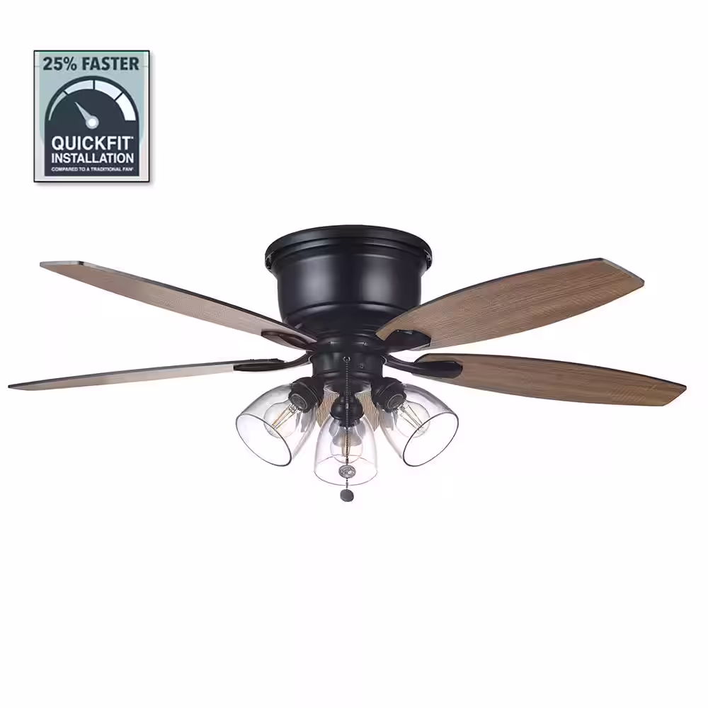 Hampton Bay Hawkspur 52 in. Integrated LED CCT Indoor/Outdoor Matte Black Ceiling Fan with Light and Remote Control
