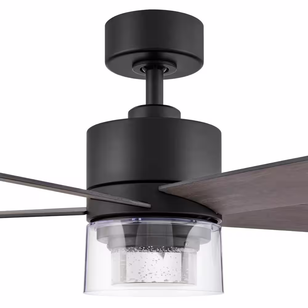 Hampton Bay Crysalis 52 in. Integrated CCT LED with Bubble Glass Indoor Matte Black Ceiling Fan with Remote Control