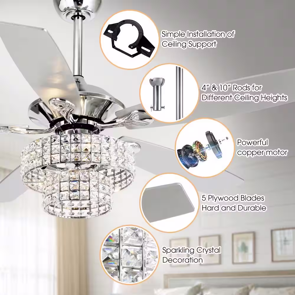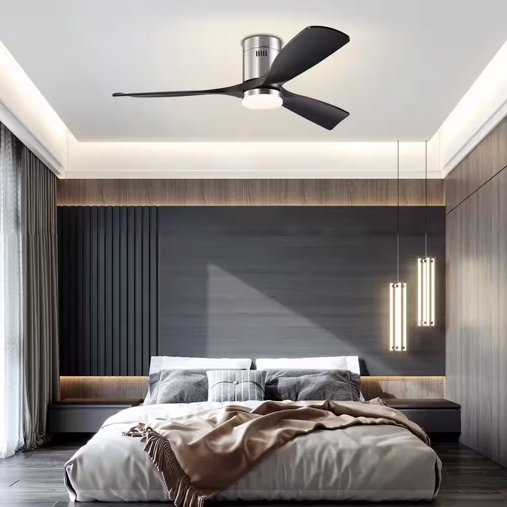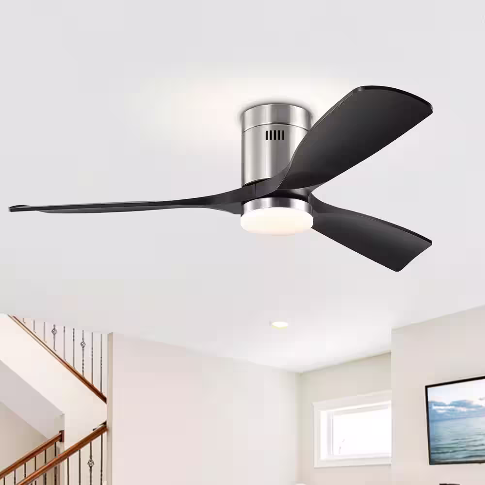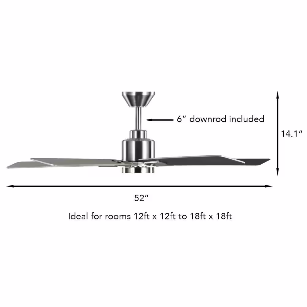 Breezary Striver 52 in. LED Indoor Satin Nickel Ceiling Fans with Light and Remote Control