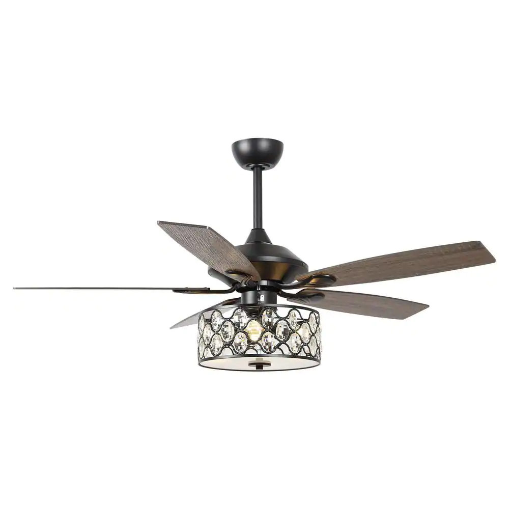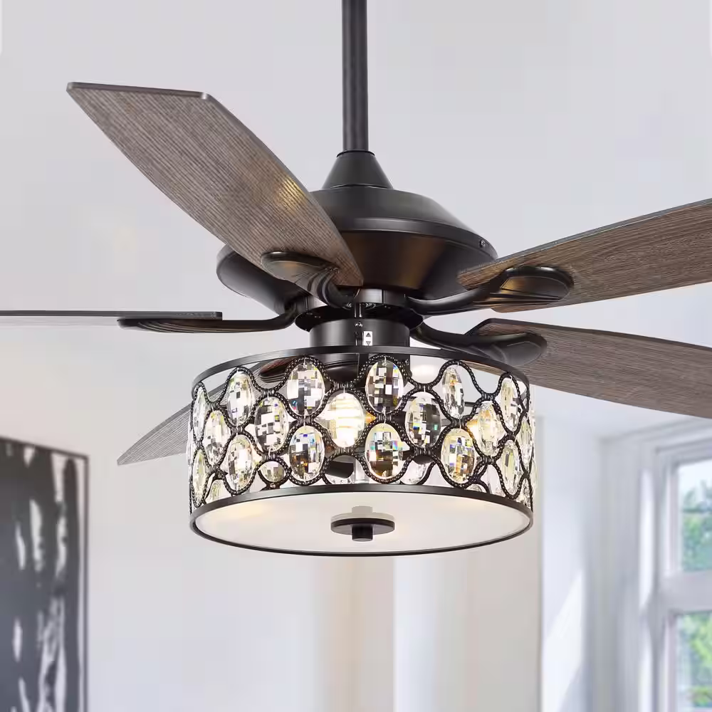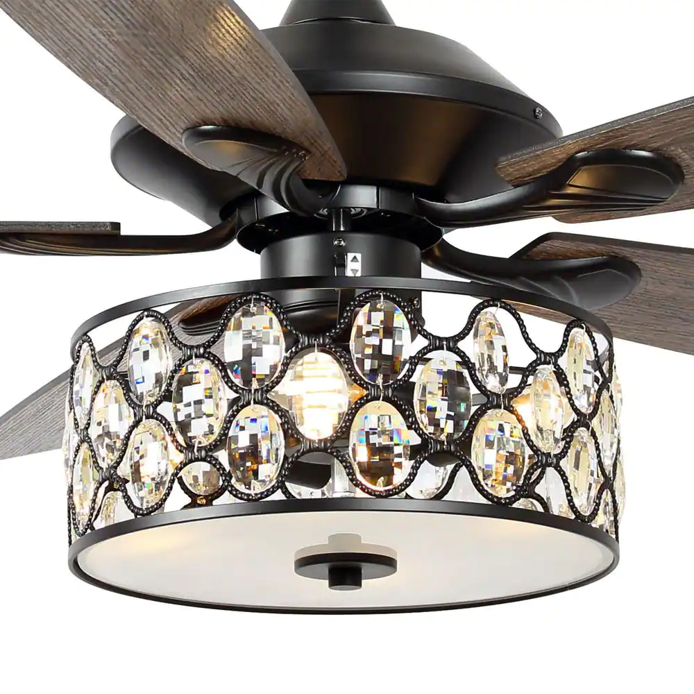 matrix decor 52 in. Indoor Matte Black Crystal Chandelier Ceiling Fan with Light and Remote Control