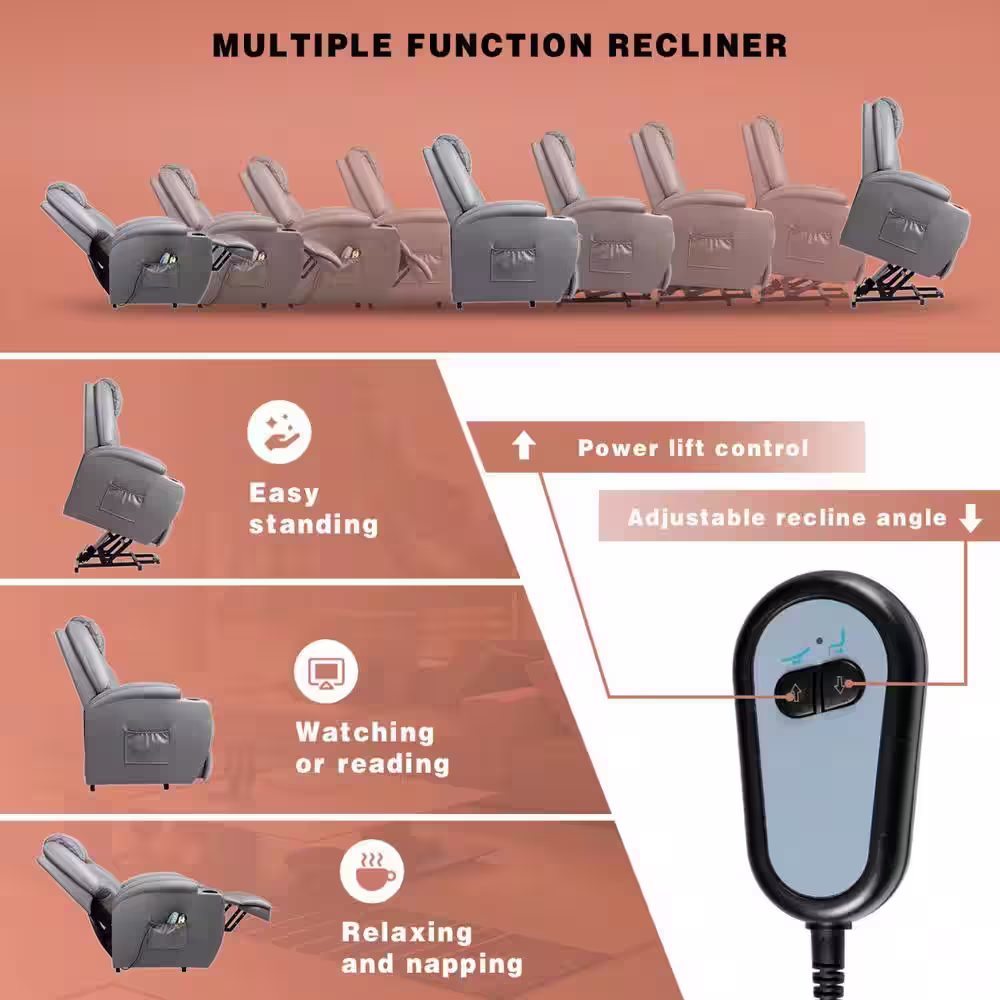 LACOO Big and Tall Gray Power Lift Recliner Chair for Elderly with Massage and Heat, Side Pockets and Cup Holders