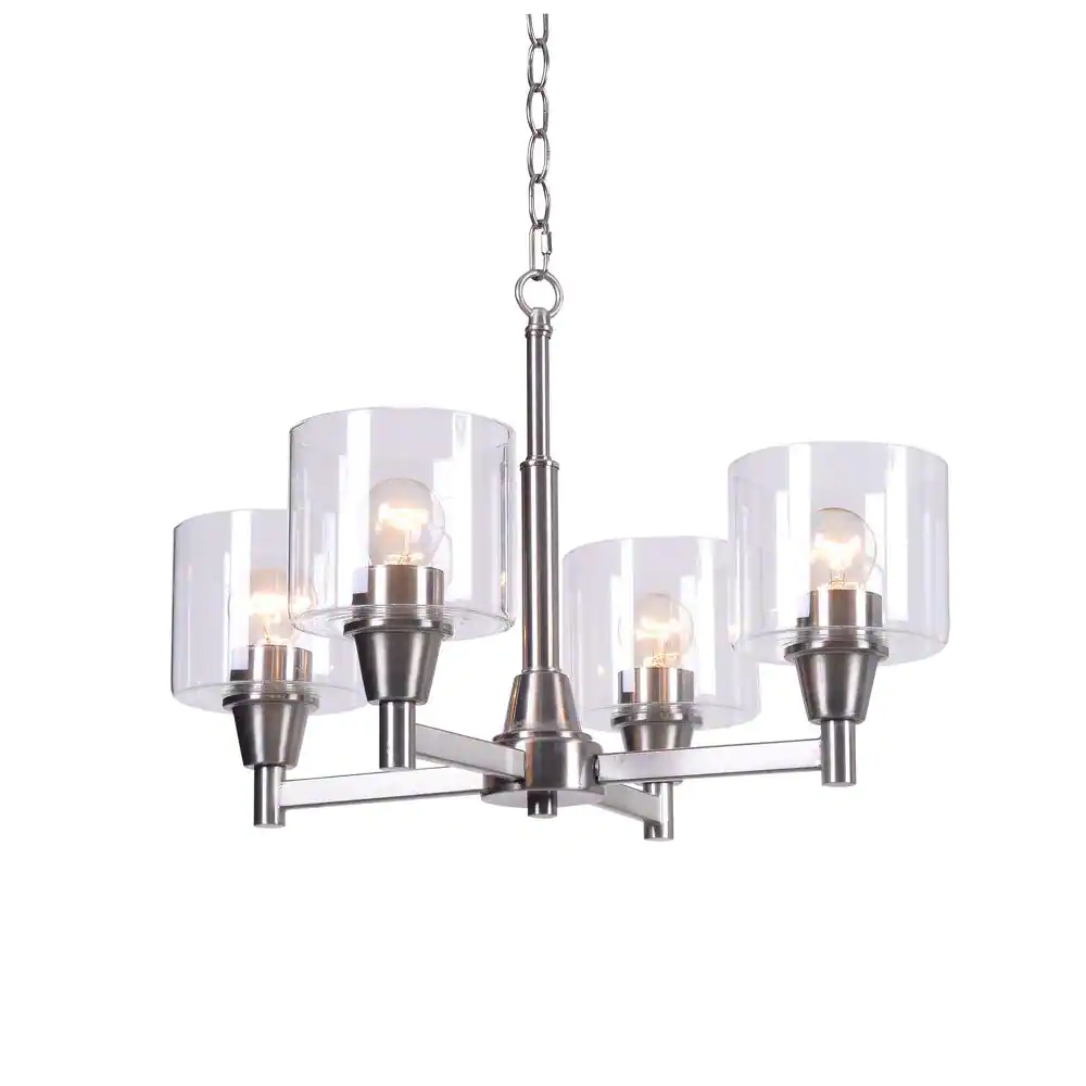 Hampton Bay Oron 4-Light Brushed Nickel Reversible Chandelier with Clear Glass Shades, Dining Room Chandelier