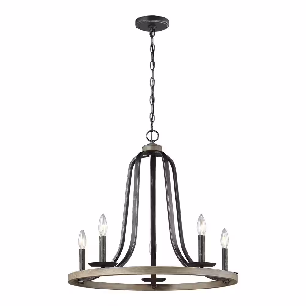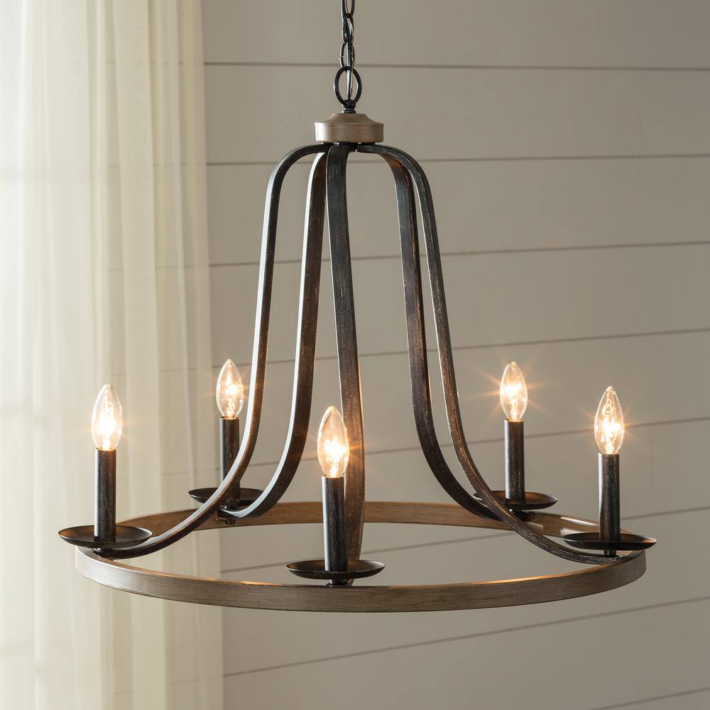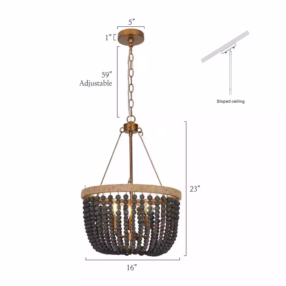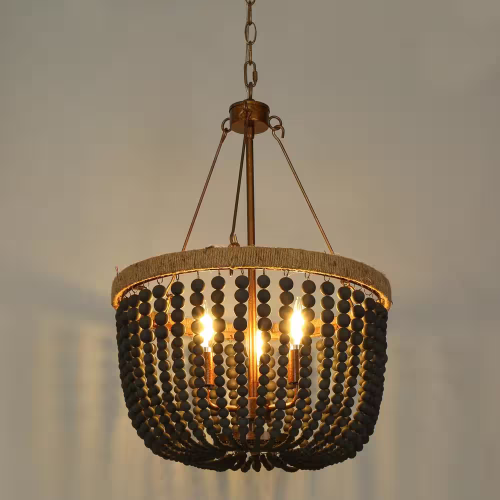 Hampton Bay Cayman 3-Light Black Chandelier Light Fixture with Black Faux Wood Beaded Shade