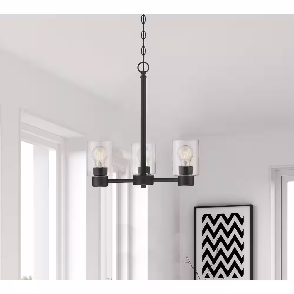 Westinghouse Sylvestre 3-Lights Matte Black Chandelier with Clear Glass