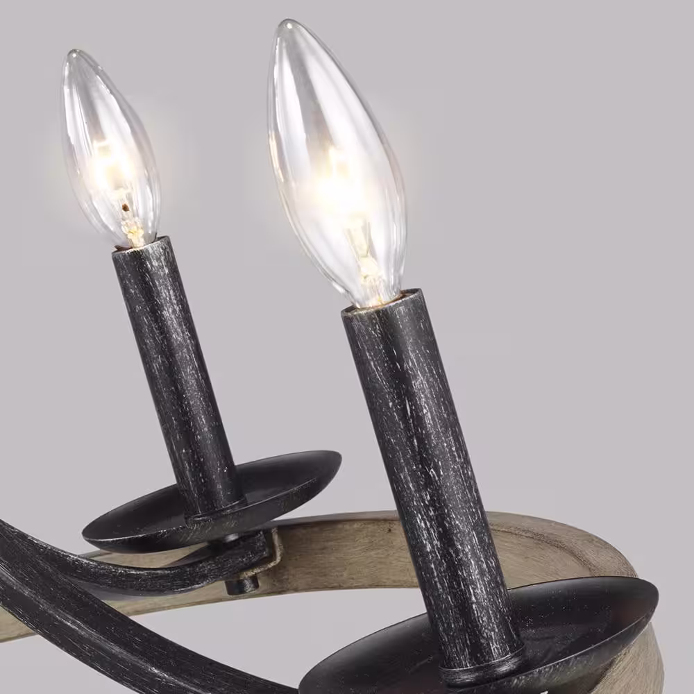 CANYON HOME 3-Light Wood Patterned Rustic Globe Round Steel Sphere Chandelier