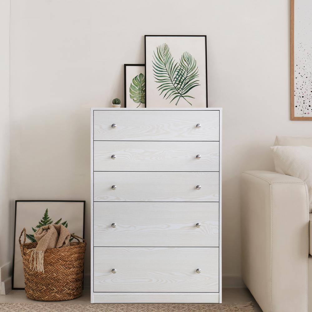 Alaterre Furniture Arden 5-Drawer Wood Chest in Light Driftwood (36 in. W x 18 in. D x 48 in. H