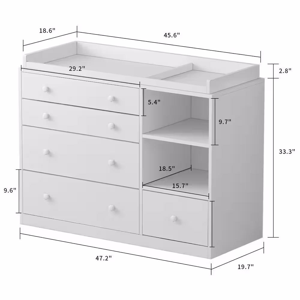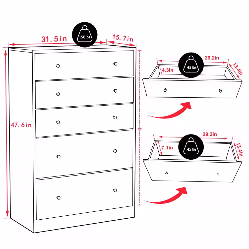 VEIKOUS Oversized 5-Drawer Off-White Chest of Drawers Dresser with 2-Large Drawers 47.6 in. H x 31.5 in. W x 15.7 in. L