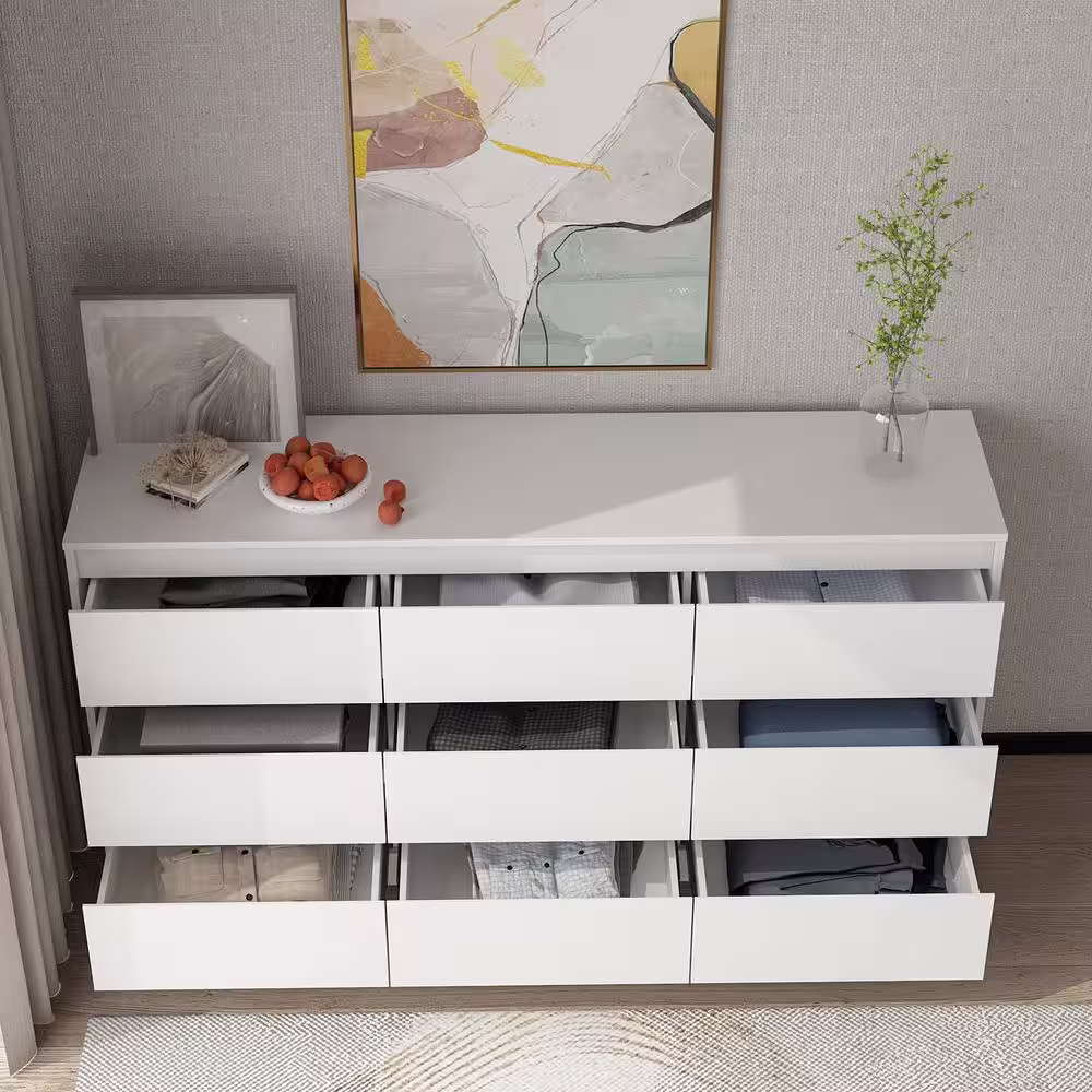 None White 9-Drawer Wood Chest of Drawers 31.5 in. H x 63 in. W x 15.7 in. D Dresser Storage Cabinet