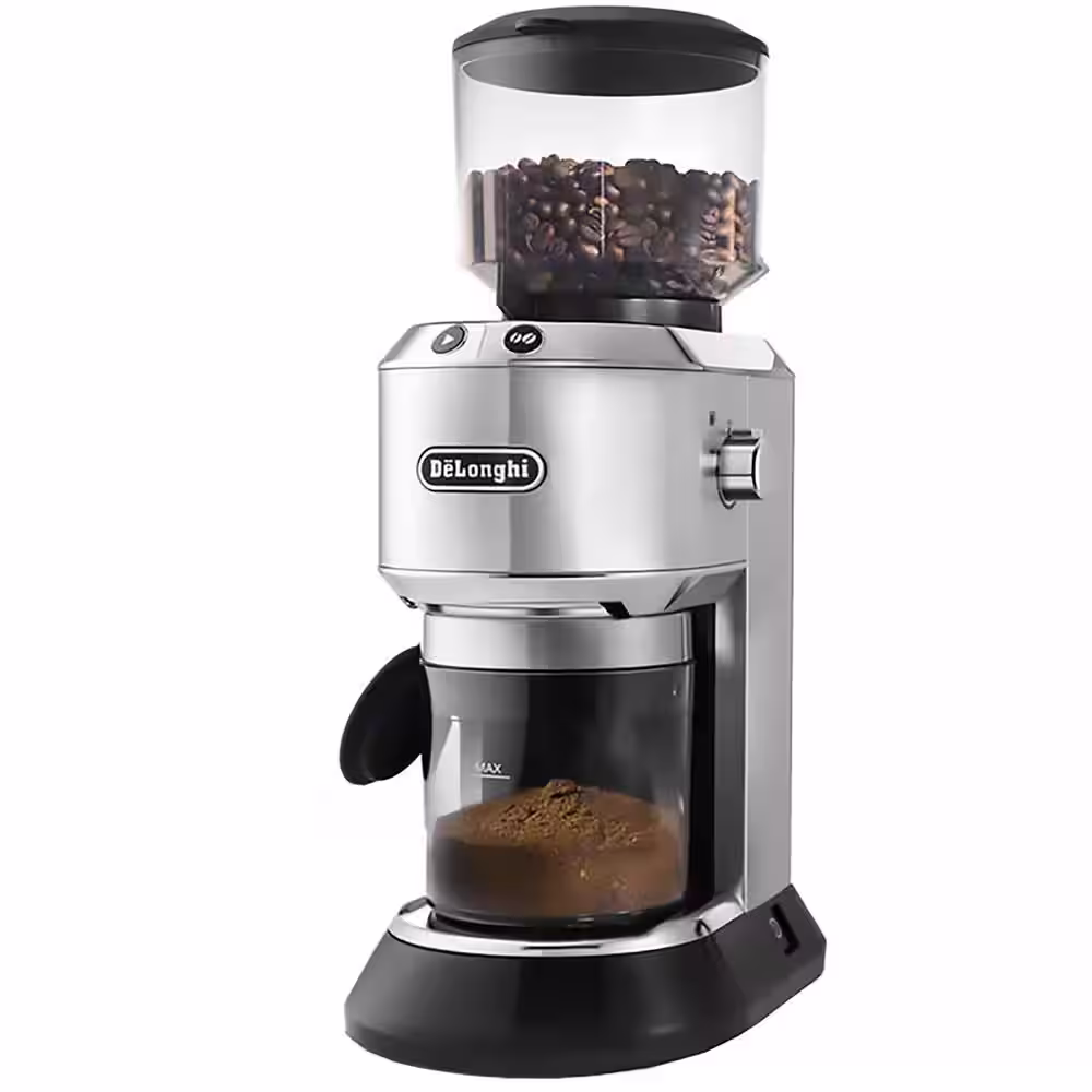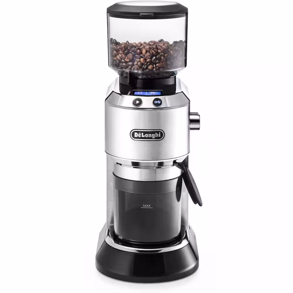DeLonghi Dedica Stainless Steel Digital Conical Burr Grinder with 18 Grind Settings and Portafilter Adaptor - 12 oz.