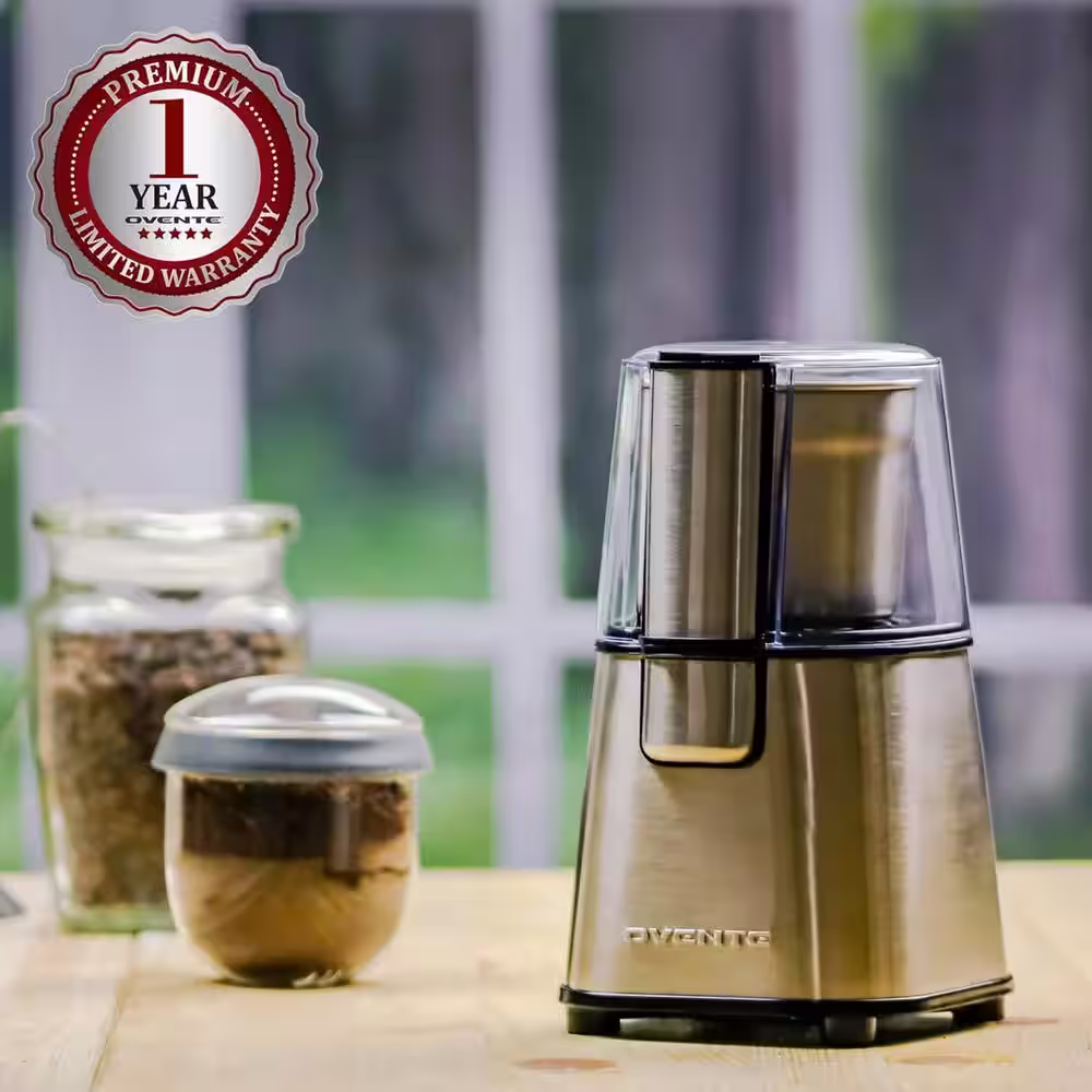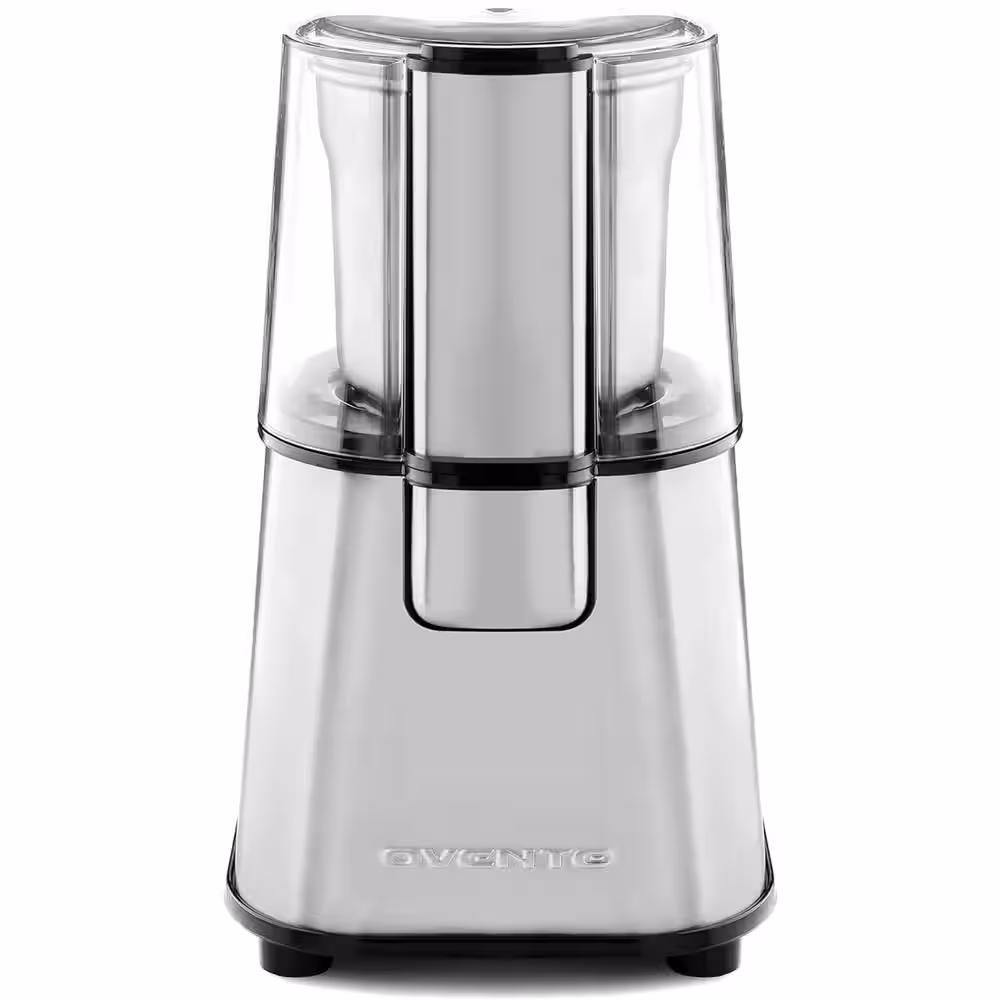 OVENTE 2.1 oz. Silver Multi-Purpose Electric Coffee Grinder Lid-Activated Switch