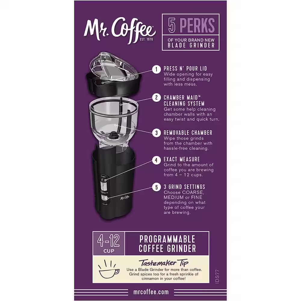 Mr. Coffee 12-Cup 97 oz. 3-Speed Programmable Blade Electric Coffee Grinder