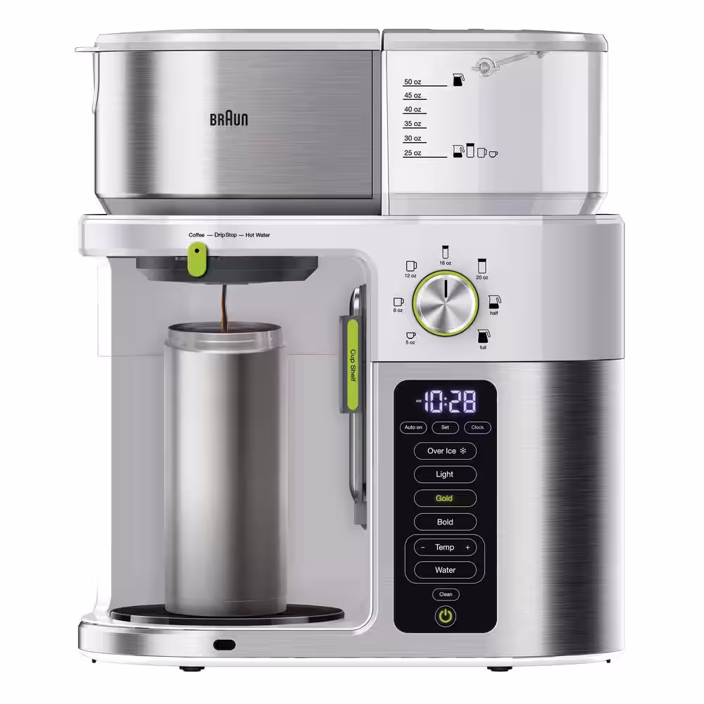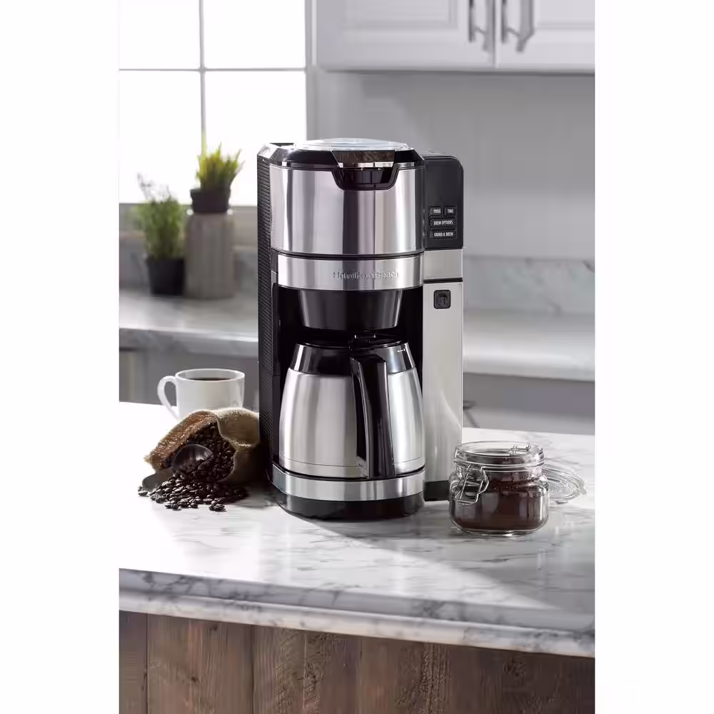 Hamilton Beach 10-Cup Black and Stainless Steel Drip Coffee Maker with Auto-Rising Coffee Grinder