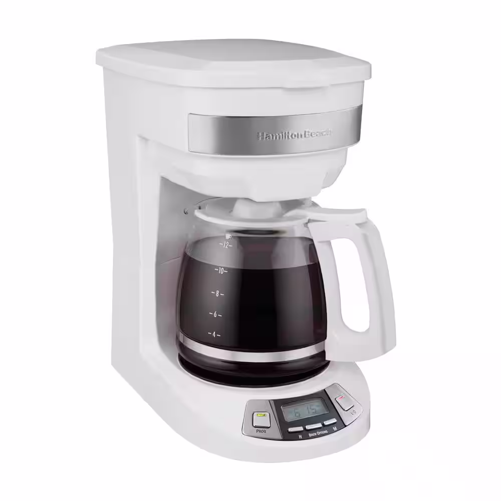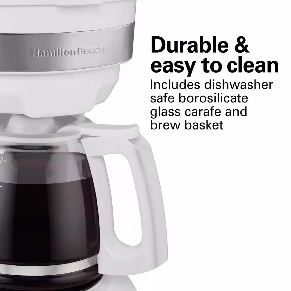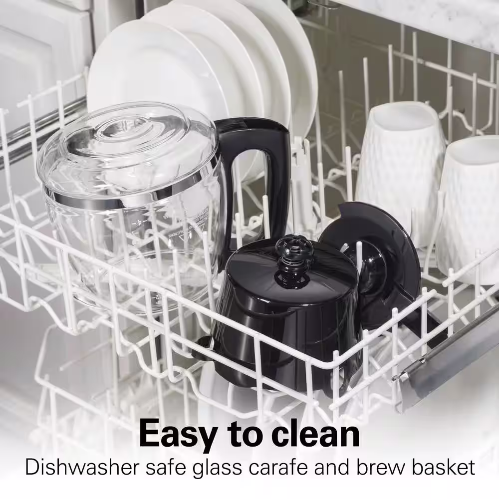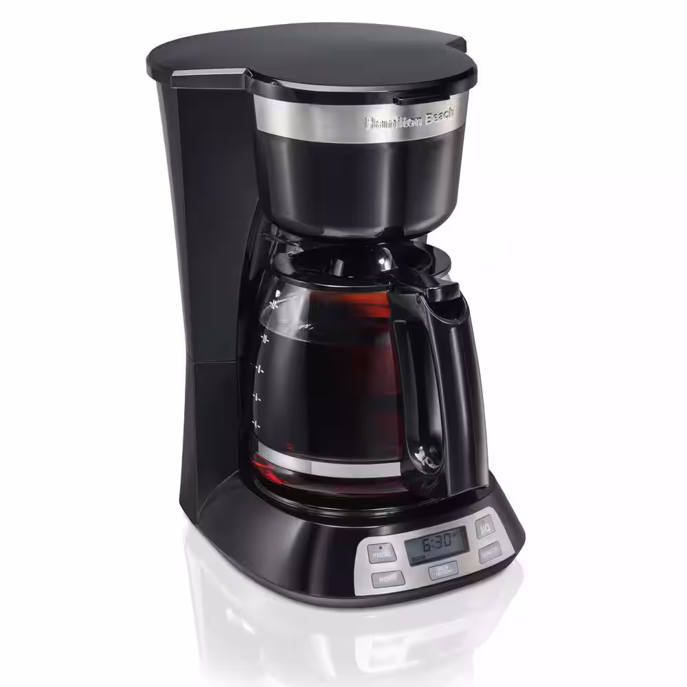 Hamilton Beach 5-Cup Black Compact Coffee Maker with Programmable Clock & Glass Carafe