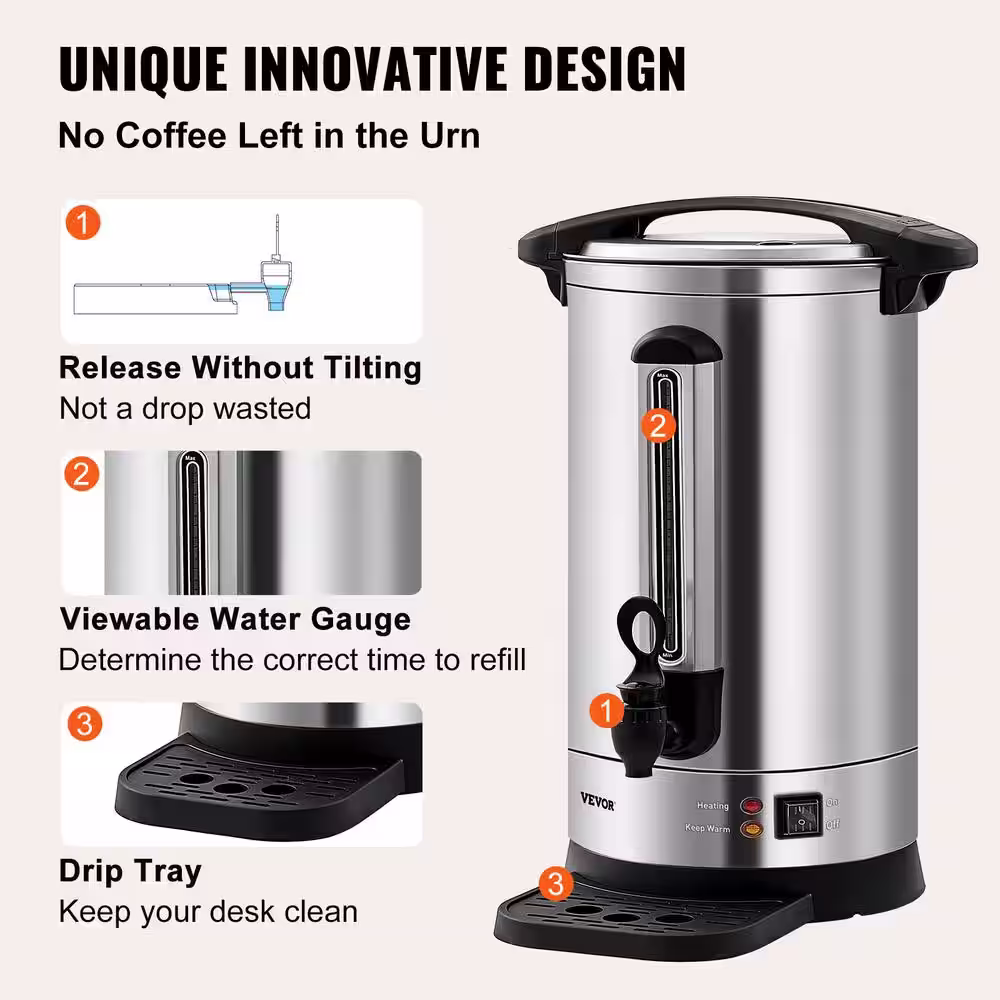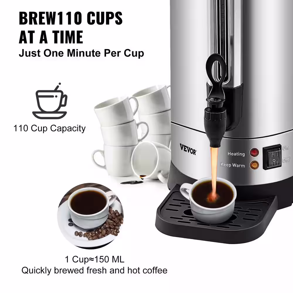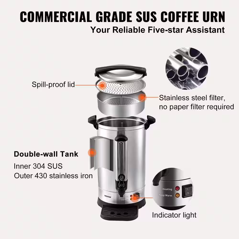 VEVOR Commercial Coffee Urn 110 Cup Stainless Steel Coffee Dispenser Fast Brew