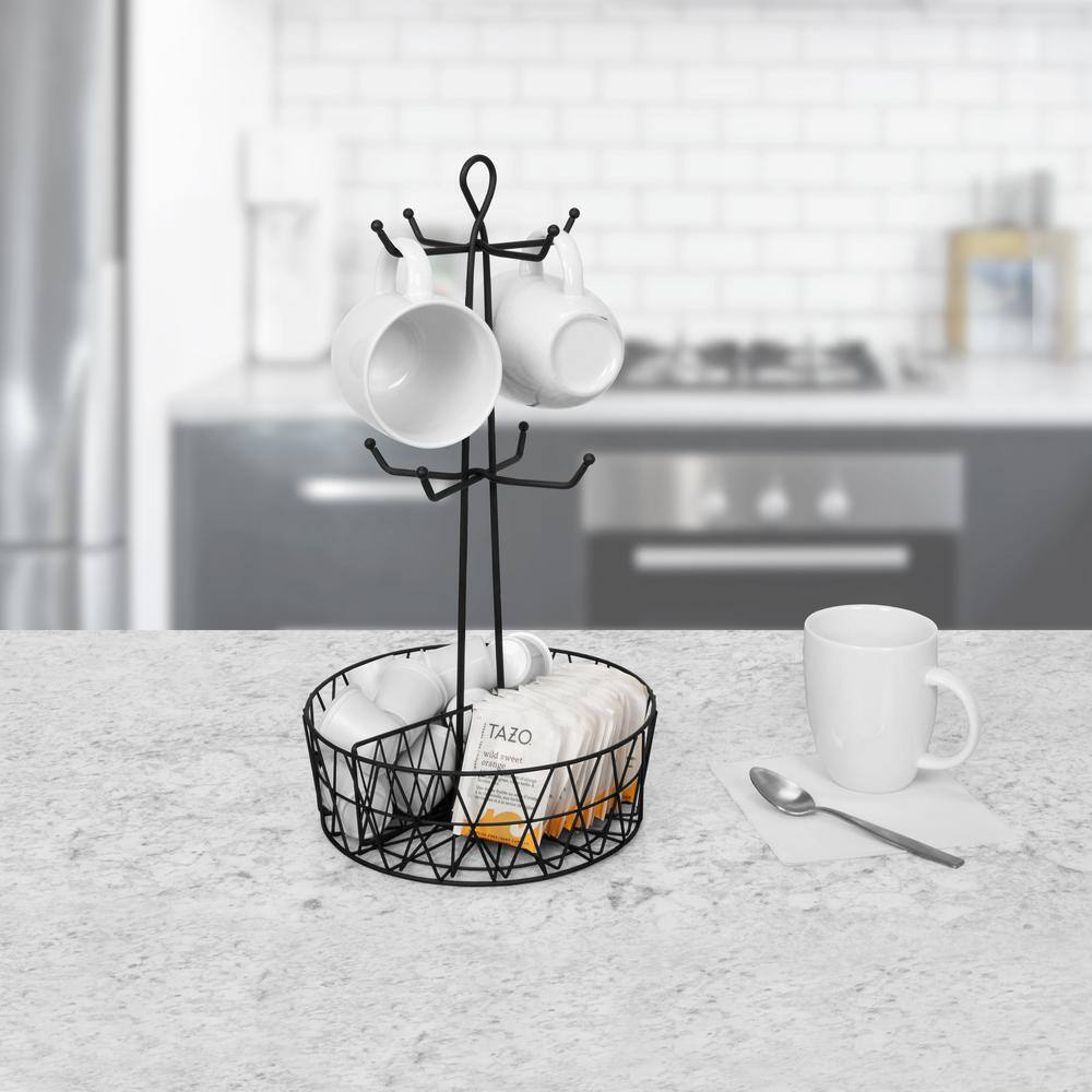 Spectrum Paxton 8-Hook Mug Tree Coffee & Tea Cup Display Stand Holder & Condiment Station Organizer, Black