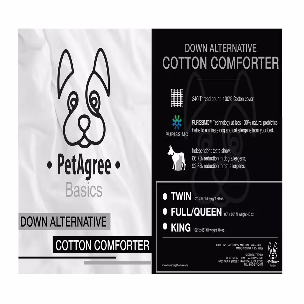 None Twin 100% Cotton Down Alternative All Seasons Comforter with Purissimo Technology
