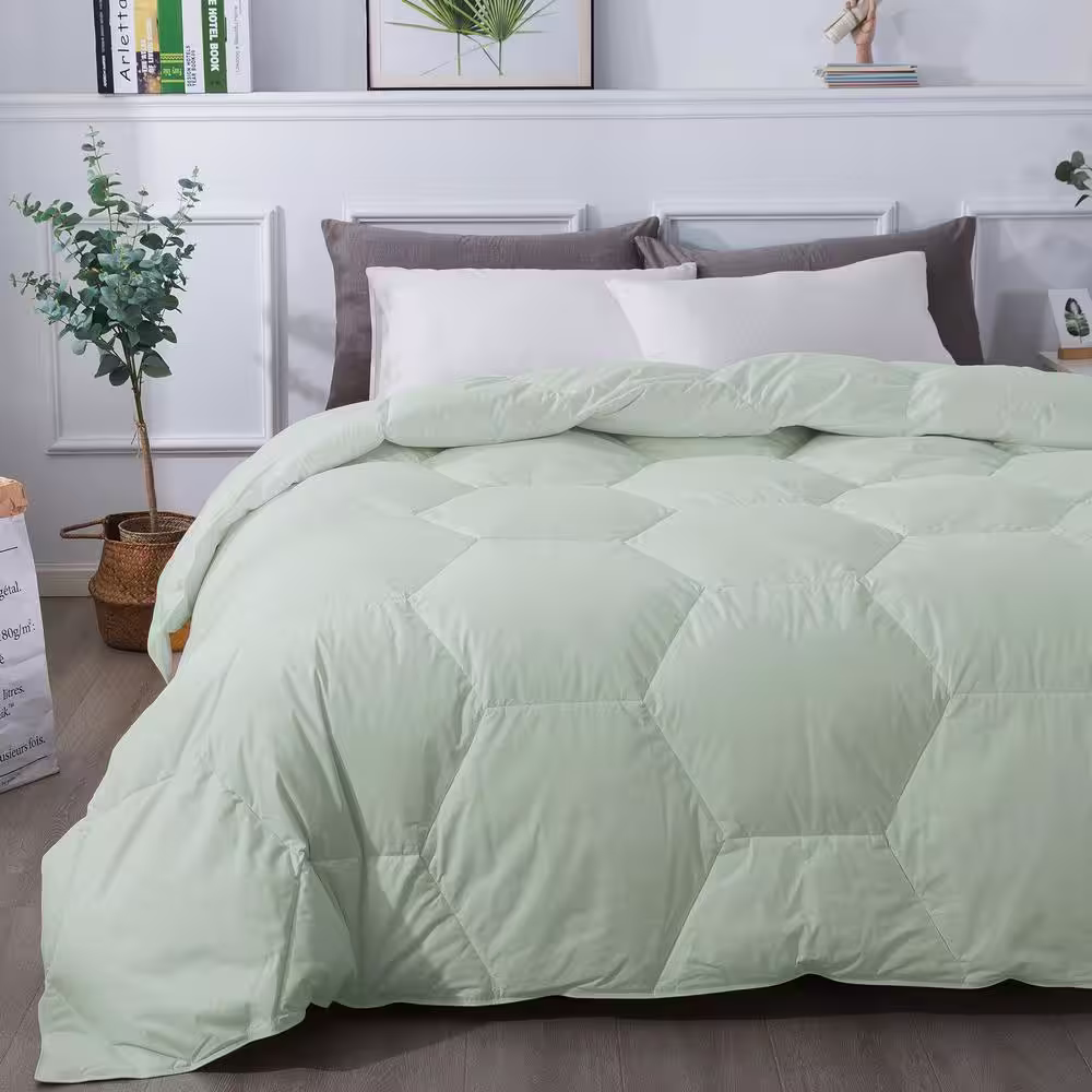 None Honeycomb Stitch All Season Green Full/Queen Down Alternative Comforter