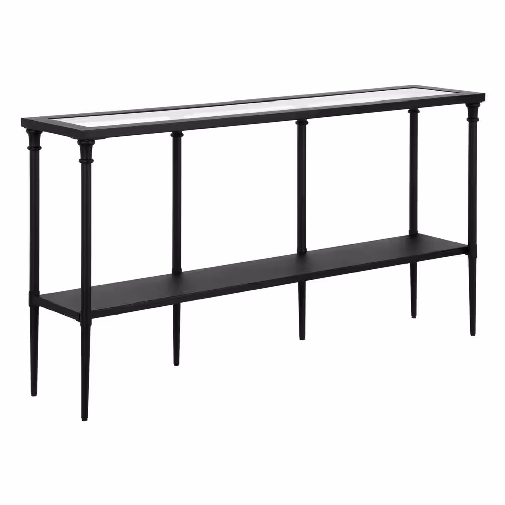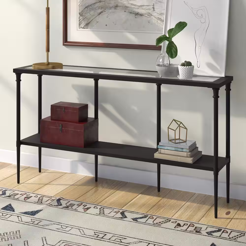 Meyer&Cross Nellie 55 in. Blackened Bronze Rectangle Glass Console Table with Solid Metal Shelf
