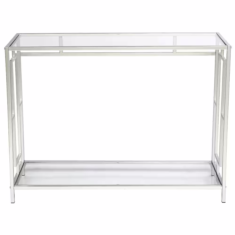None 40.16 in. Standard Rectangle Silver FCH Toughened Glass Panel Console Table with Shelves