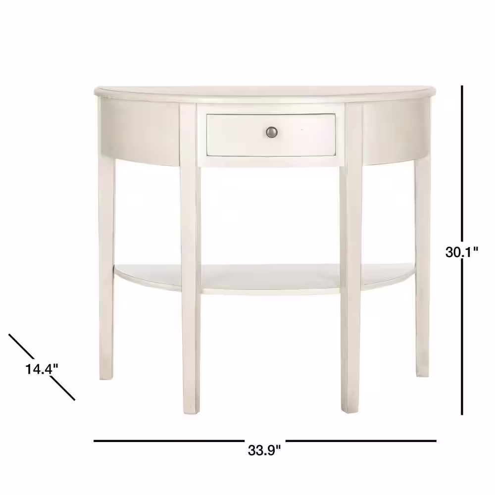 SAFAVIEH Abram 34 in. White Birch Standard Half Moon Wood Console Table with 1-Drawer